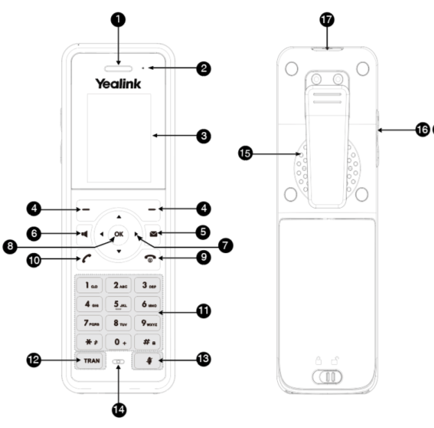 17 | Notruftaste | Die Taste 2 Sekunden lang gedrückt halten, um den Notruf auszulösen. Hinweis: Die Notruftaste des Yealink W59R wird nicht über die NFON-Provisionierung konfiguriert. Bei Bedarf muss sie manuell durch den Partner konfiguriert werden. Detaillierte Schritte finden Sie im offiziellen Yealink W59R manual. |