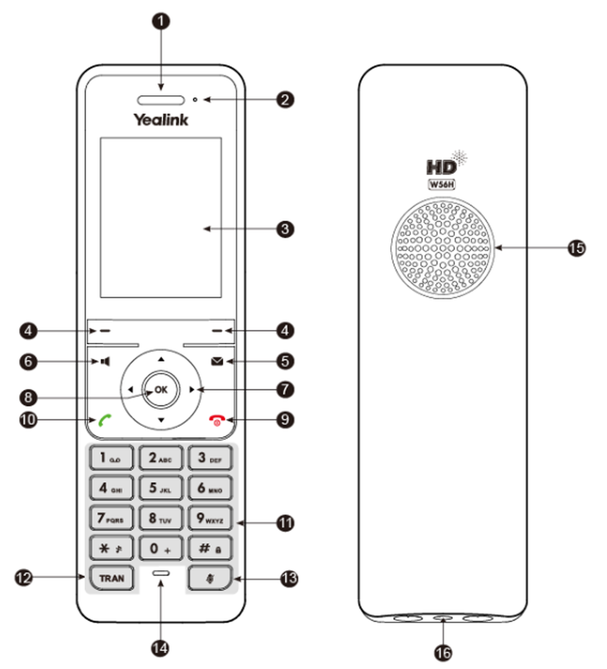 | 2 | Power LED Indikator | Zeigt den Anrufstatus, den Nachrichtenstatus und den Ladestatus an. |