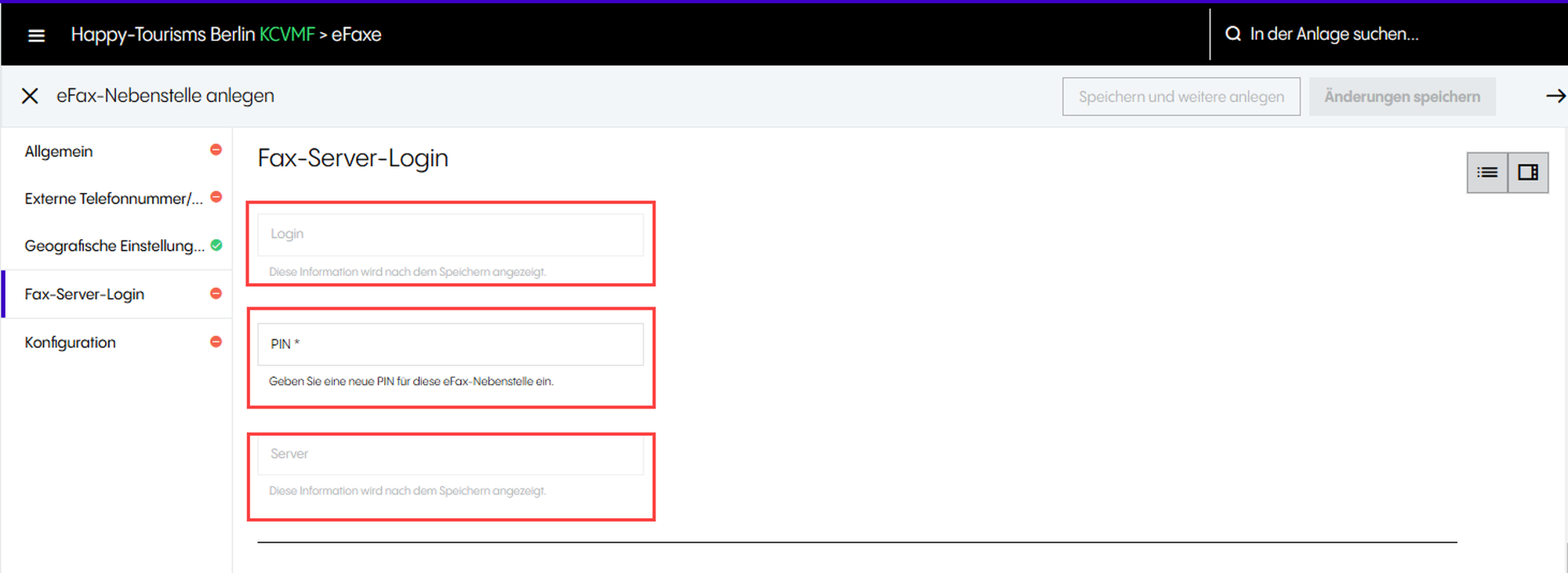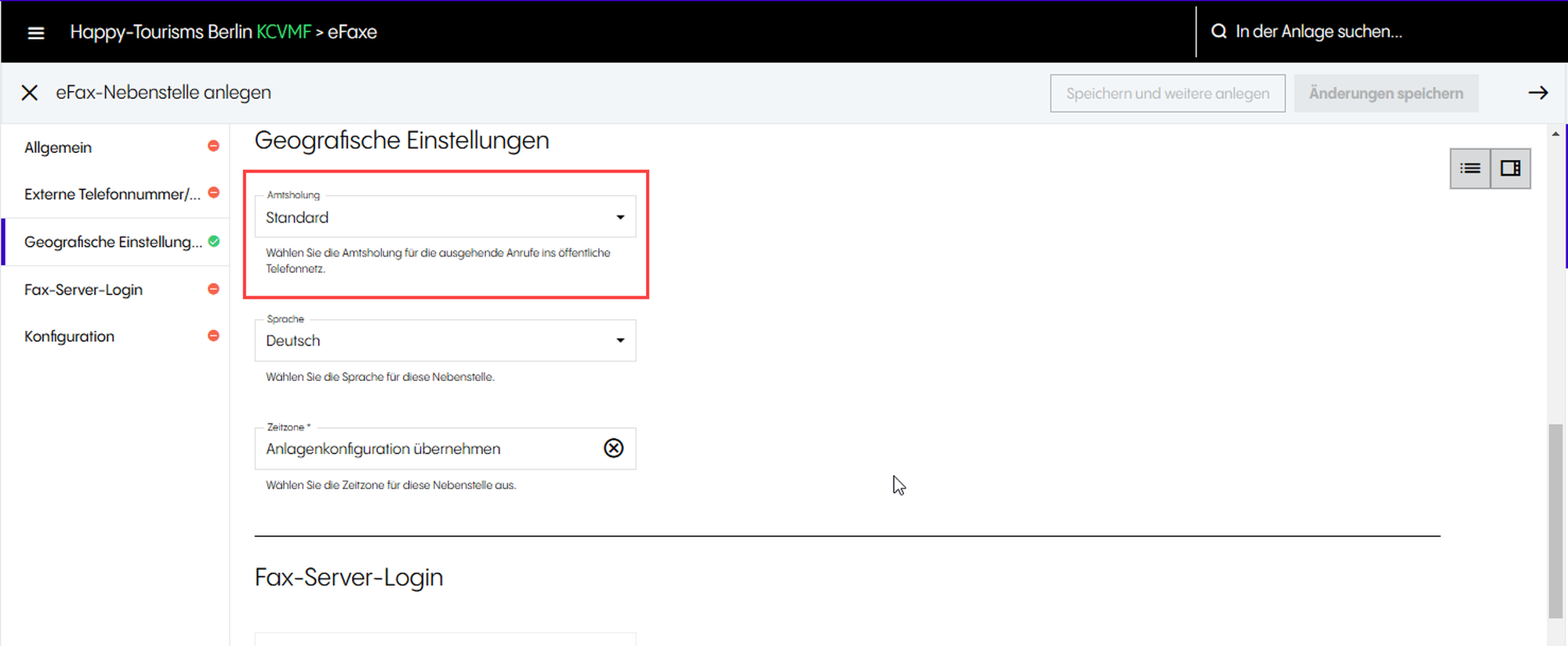 Nebenstelle | Weist eine interne Nebenstellennummer zu. Bitte beachten Sie, dass die Zuweisung einer Nebenstellennummer nicht zwingend erforderlich ist, sodass Sie dieses Feld auch frei lassen können. Wenn Sie sich für die Zuweisung einer Nebenstellennummer entscheiden, beachten Sie bitte, dass die gleichen Regeln gelten wie im Abschnitt Telefonnebenstellen. |