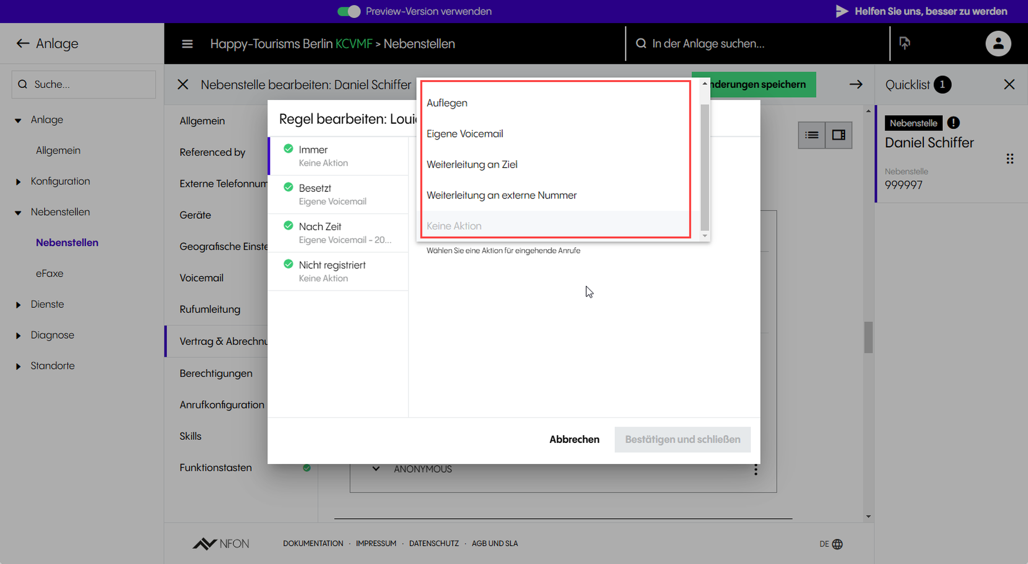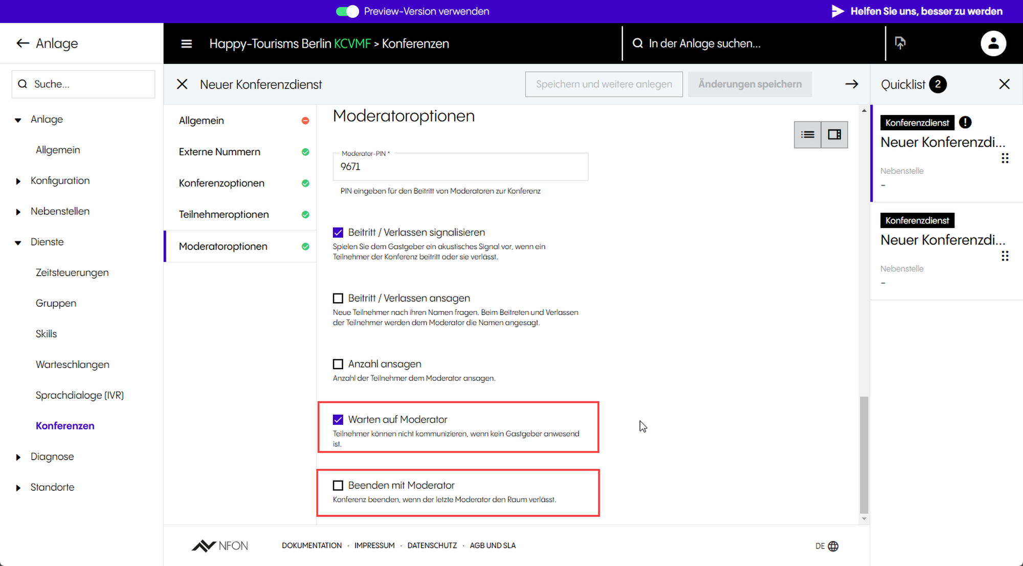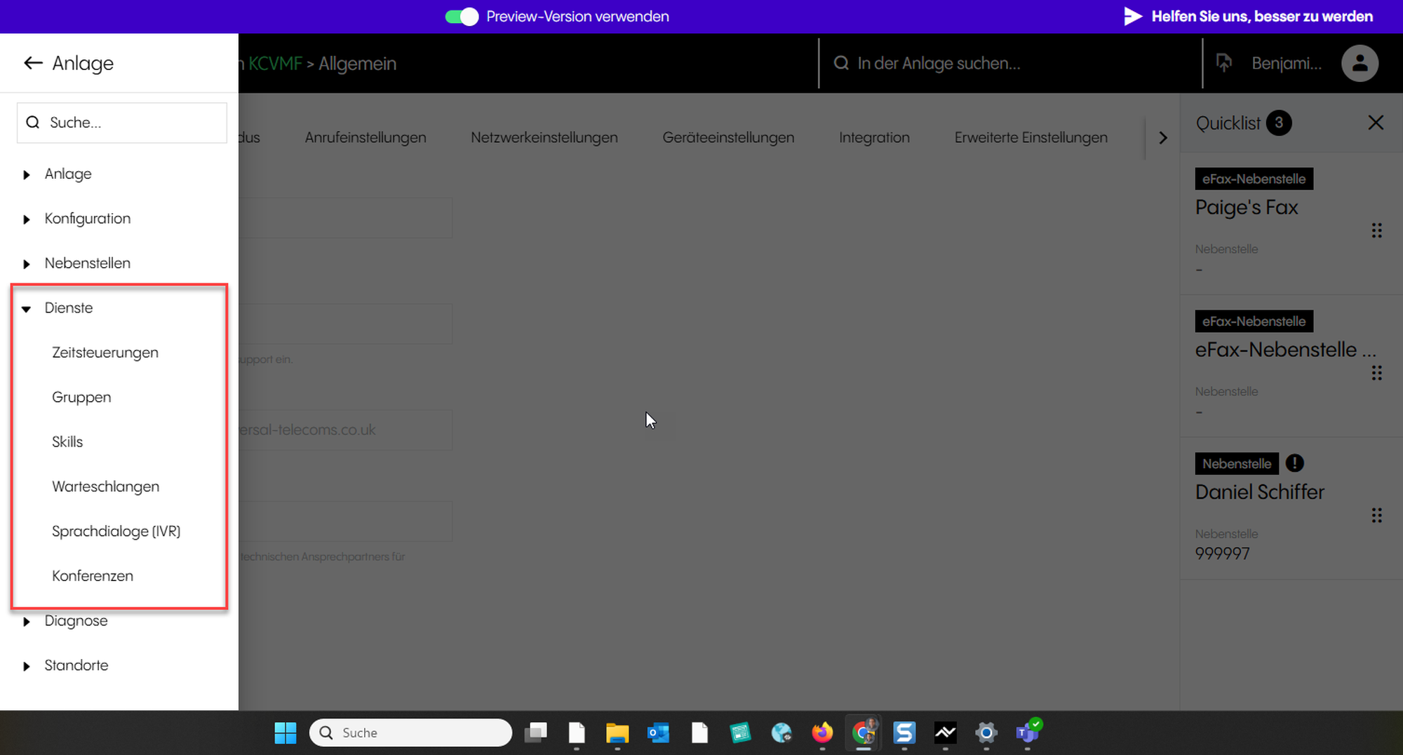 Dienste (Zeitsteuerung, Gruppen, Skills, Warteschlangen, Sprachdialoge IVRs und Konferenzen)