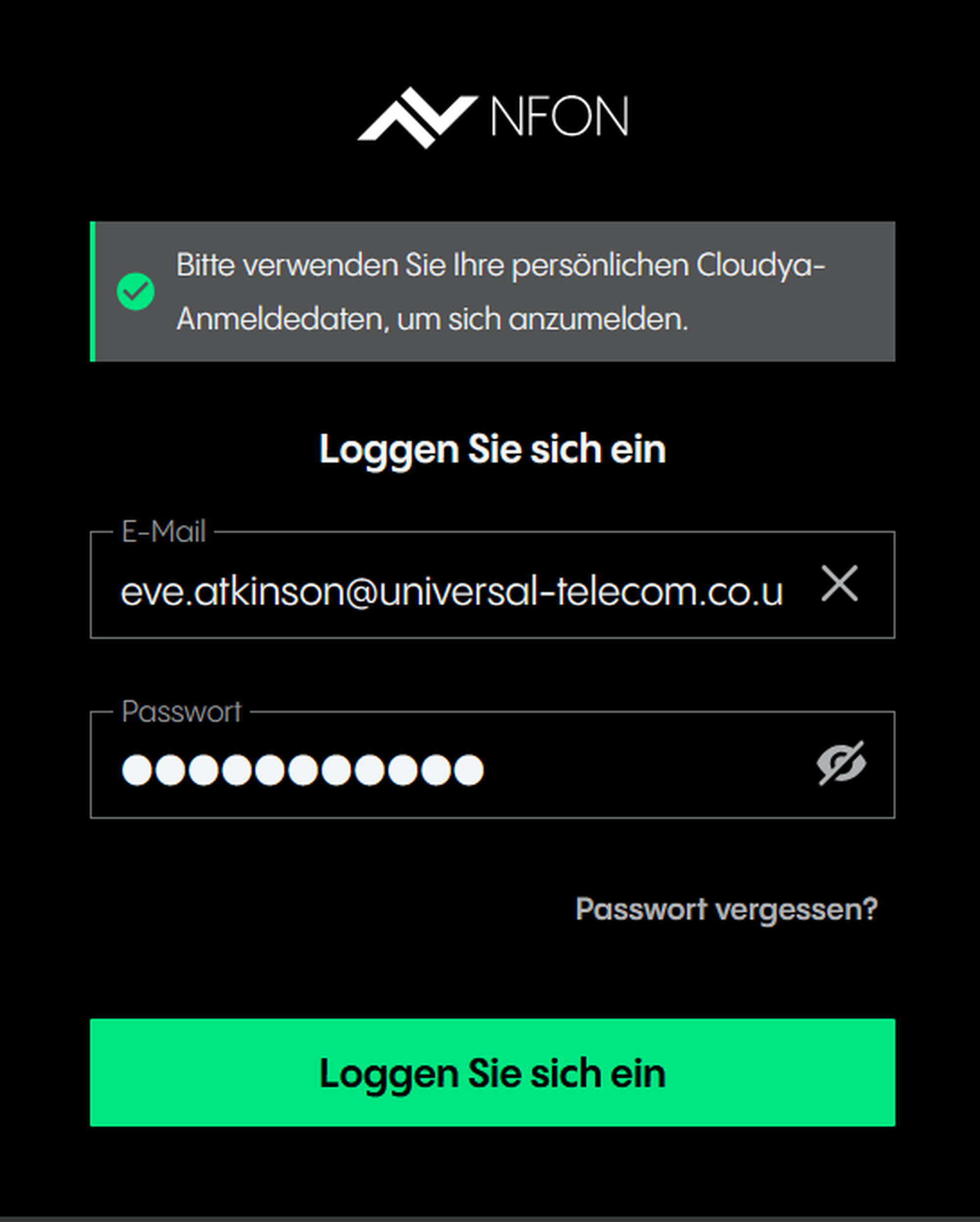 Geben Sie Ihren Benutzernamen (Ihre E-Mail) und Ihr Passwort ein (das Ihnen von DFN zur Verfügung gestellt wurde).