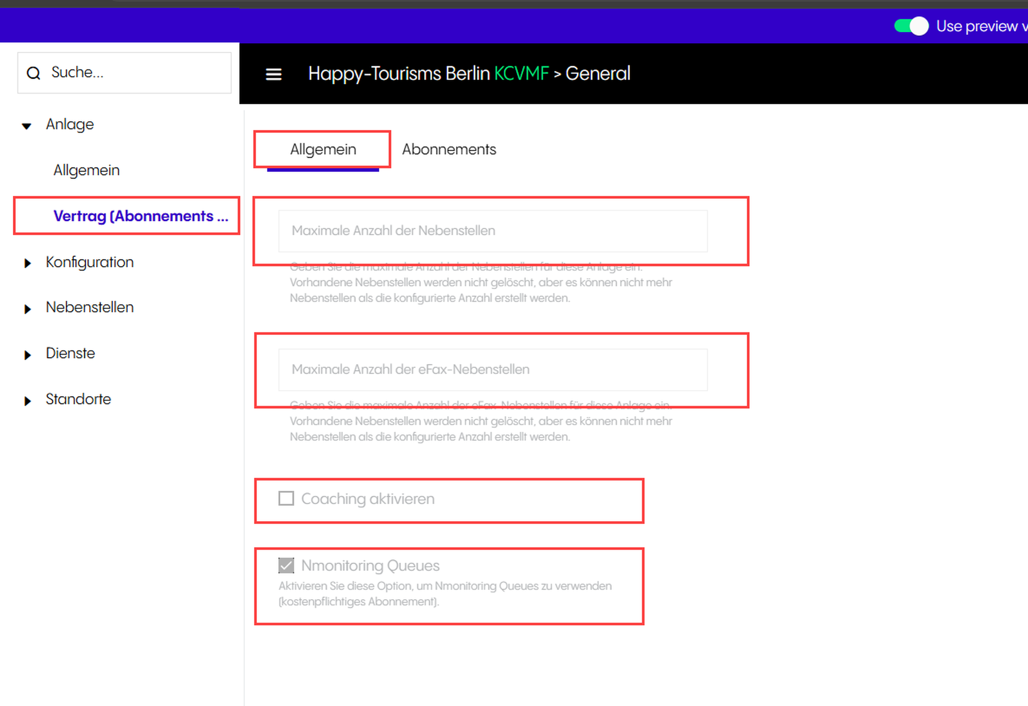 Sprachnachrichten transkribieren (AI) | Aktiviert automatische Voicemail-Transkription Standardmäßig für alle Nebenstellen aktiviert. Bitte beachten Sie, dass Sie diese Einstellung für eine bestimmte Nebenstelle unter Nebenstellen > Telefonnebenstellen deaktivieren müssen, siehe Voicemail. Bitte beachten Sie, dass es bei Deaktivierung dieser Einstellung nicht möglich ist, diese individuell für eine bestimmte Nebenstelle zu aktivieren. |