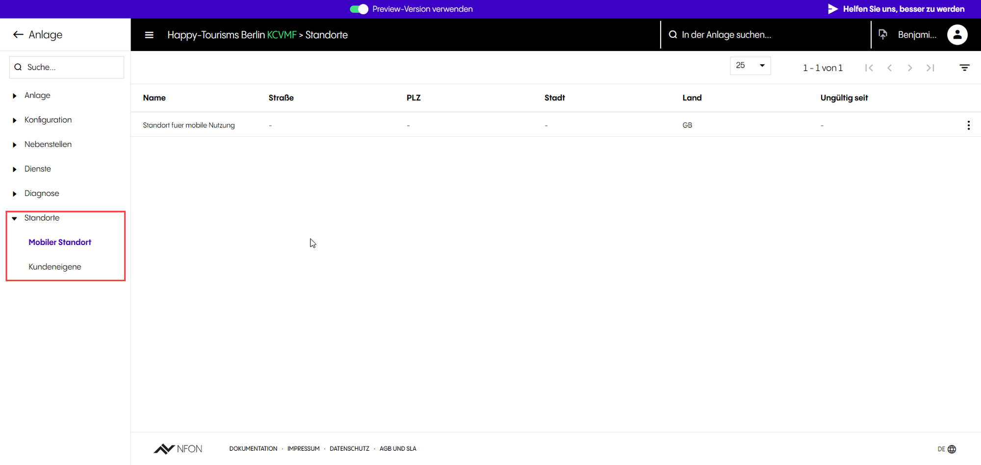 Phone number | Mobilfunknummer des technischen Ansprechpartners bzw. Teams des Anlageninhabers. Dieses Feld kann leer gelassen und zu einem späteren Zeitpunkt ausgefüllt werden. |