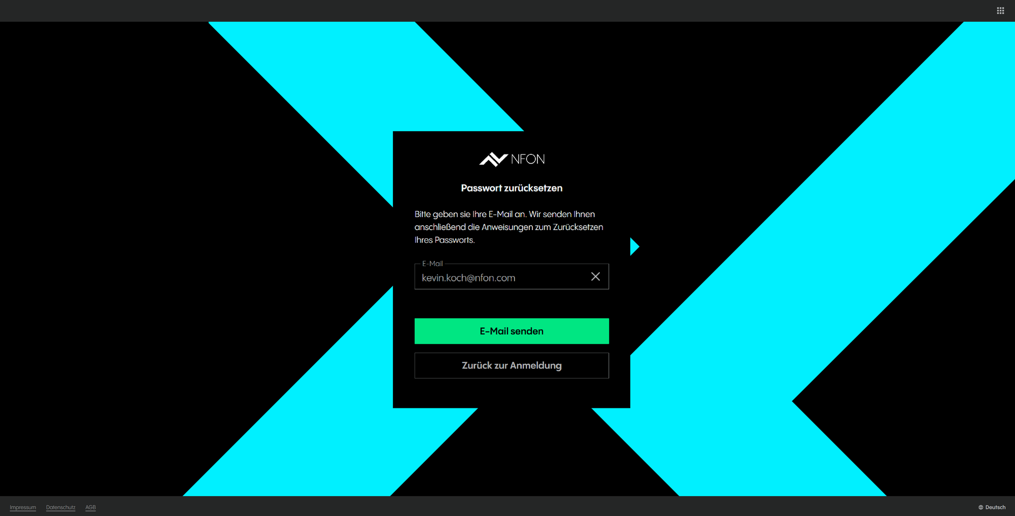 ⇒ Es öffnet sich eine neue Seite zum Einrichten eines neuen Passworts.