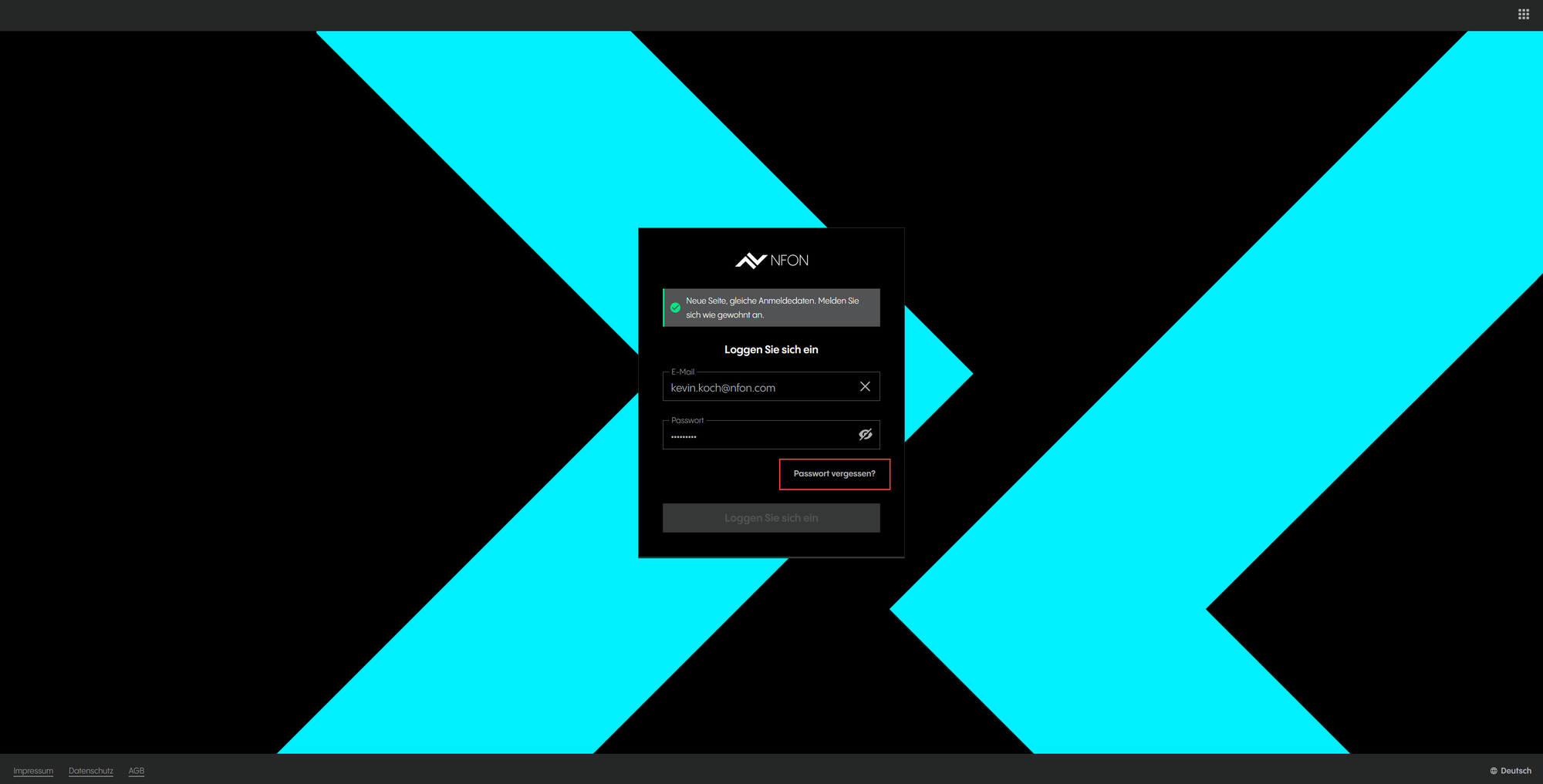 ⇒ Ihr Passwort wurde aktualisiert und Sie können sich erneut anmelden.