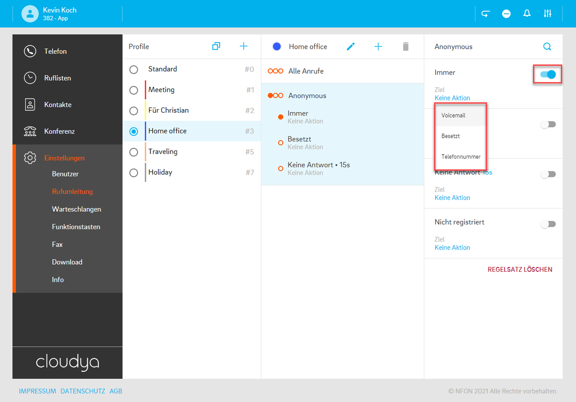 Standardmäßig ist die App als Ihr primäres Endgerät eingestellt. Das bedeutet, dass bei einem eingehenden Anruf die App den Anruf anzeigt und klingelt. Sollten Sie dies ändern möchten, ändern Sie das ausgewählte Endgerät.