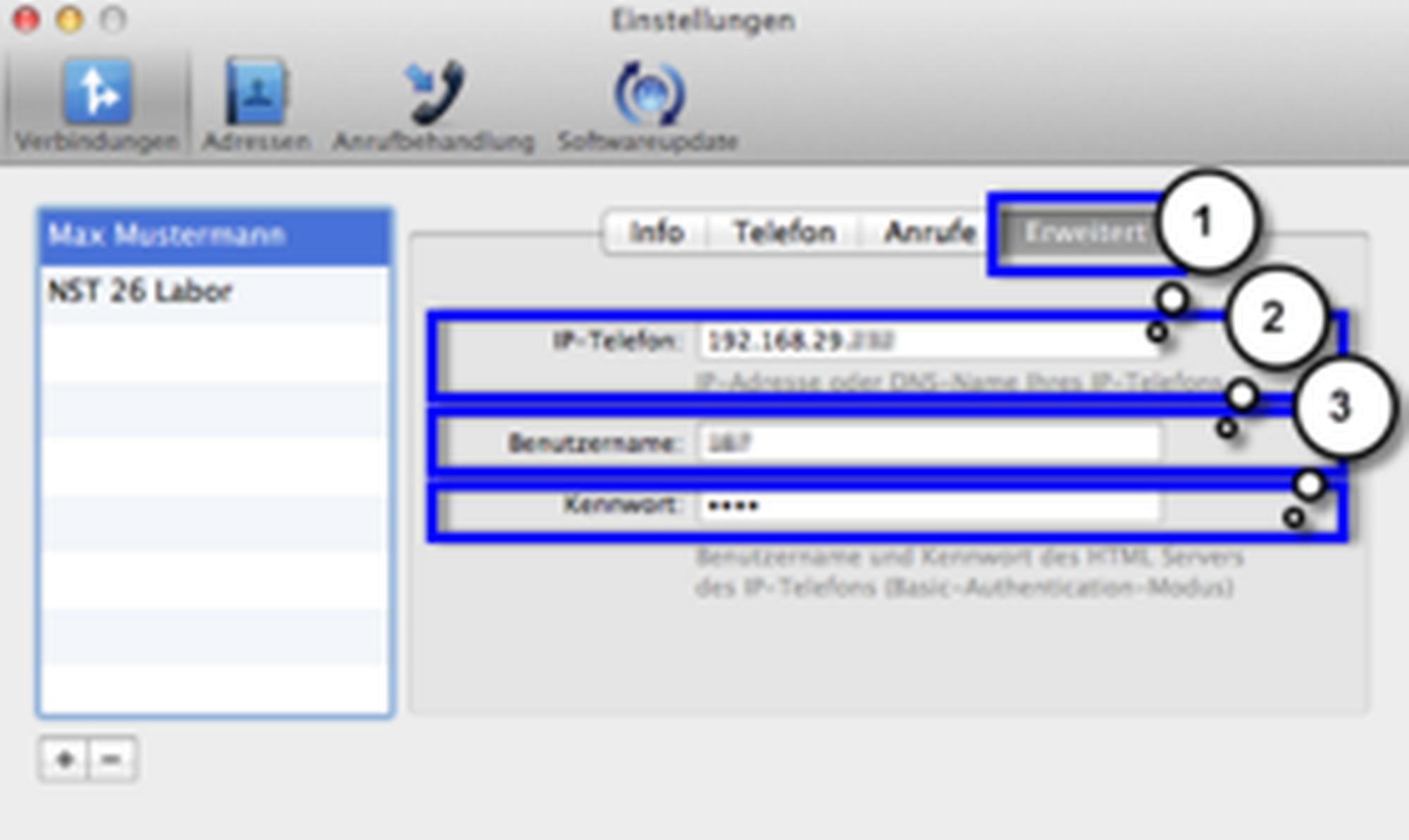 Ihr NCTI standard Client für Mac verfügt über zahlreiche Funktionen wie bpsw. Click-2-Dial. Außerdem ist mithilfe einer intelligenten Wahlwiederholungsliste auch das direkte Anwählen von Kontakten verschiedener Adressbücher möglich. Damit zeigt Ihnen der NCTI standard Client für Mac sogar Name, Firma und Profilbild eines Anrufers mittels Screenpopup an. Ergänzend dazu ist eine weitere Besonderheit Ihres Clients die Anzeige des Presence-Status mithilfe der Bonjour-Funktion. Somit haben Sie jederzeit einen Überblick der Rufaktivitäten aller Anwender im gleichen Netz.
