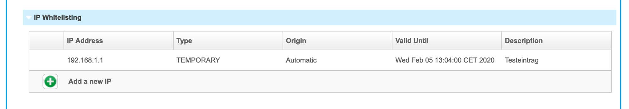 Für Geräte im Netz des Kunden, dessen öffentliche IP-Adresse auf der Whitelist steht. Eine erfolgreiche Provisionierung (Yealink oder Spectralink) setzt diese IP automatisch für 8 Stunden auf die Whitelist. Dieser Zeitraum wird automatisch bei jeder Provisionierung (alle 4-6 Stunden) automatisch verlängert.