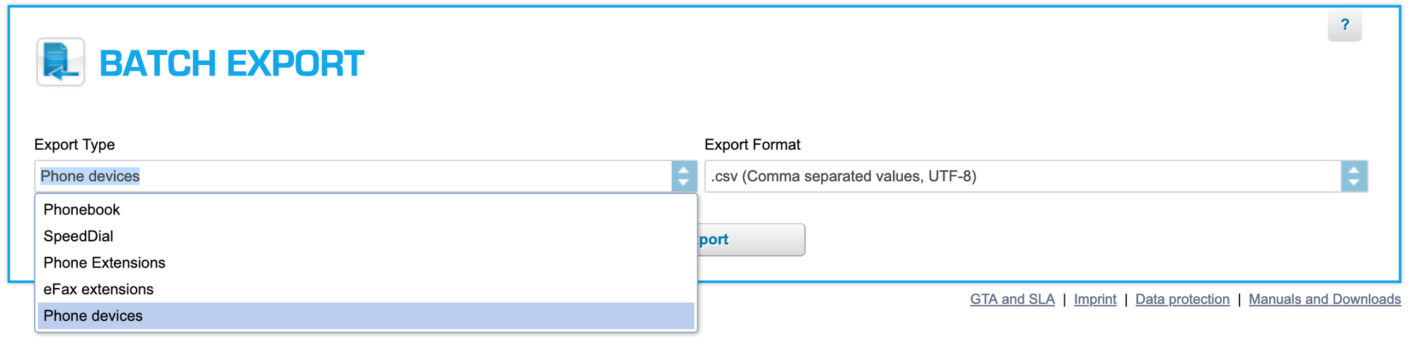 *Eine Liste aller Telefone einschließlich der MAC-Adresse und PAP noch nich authentifizierter Telefone kann als CSV-Datei exportiert werden.