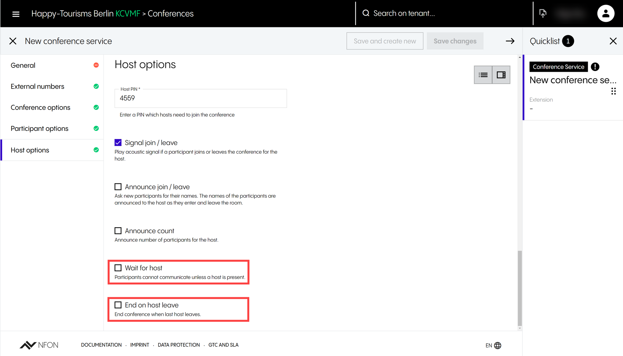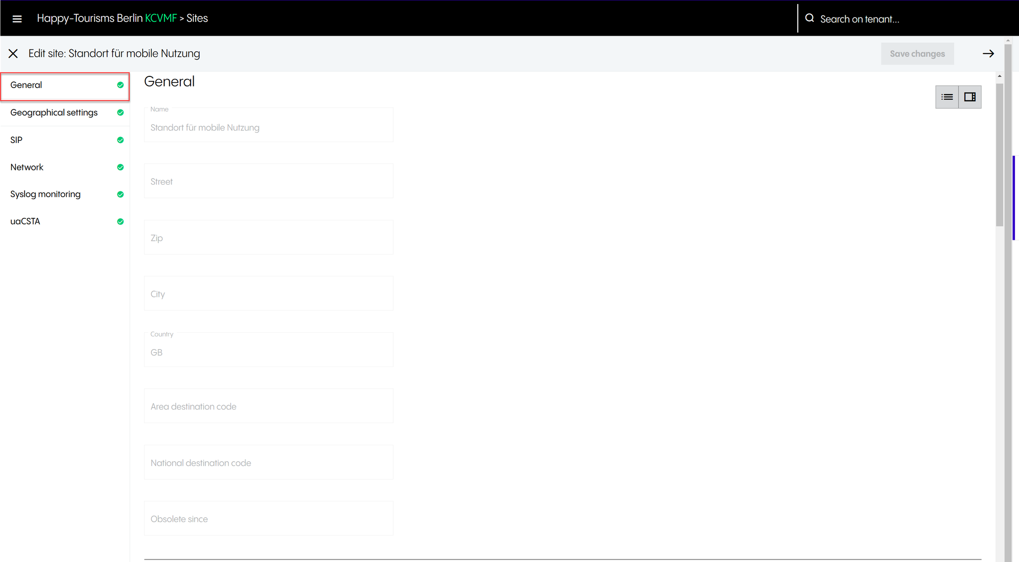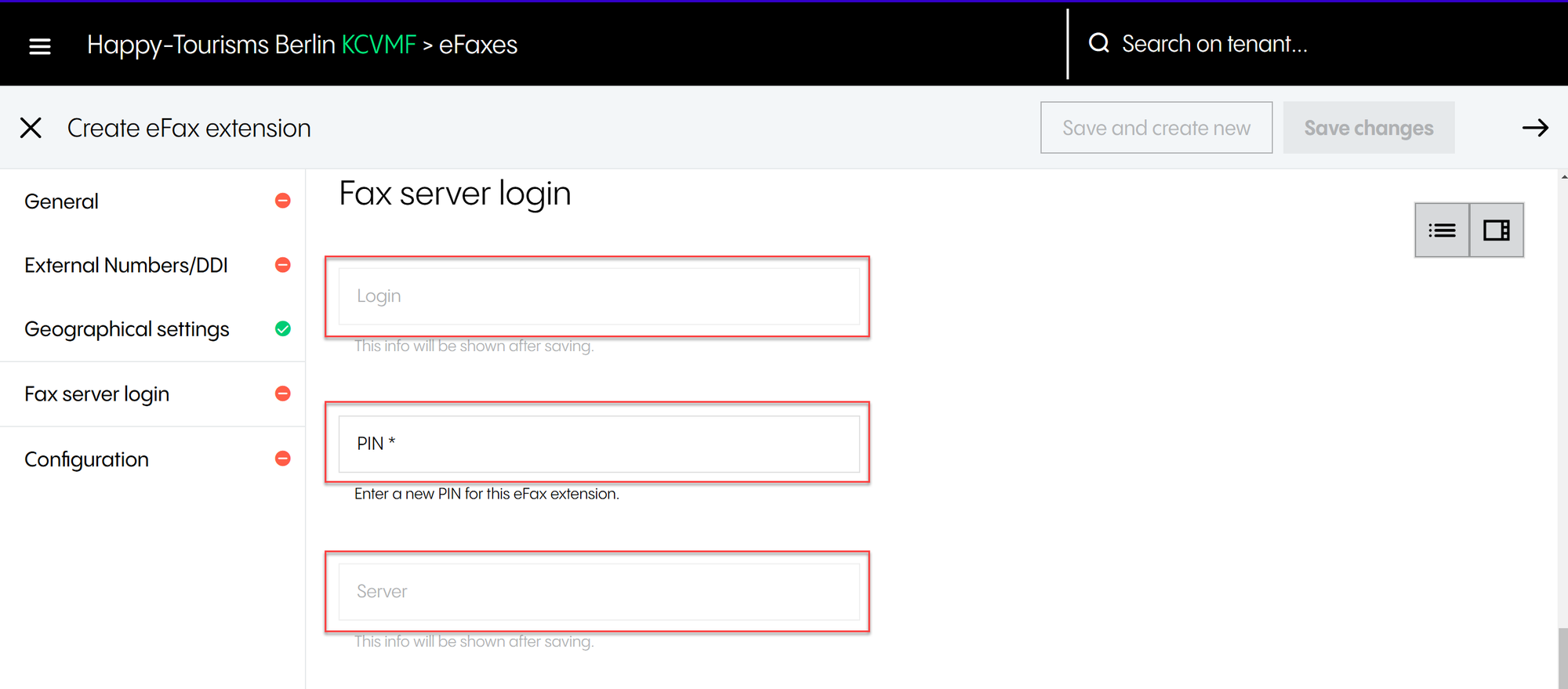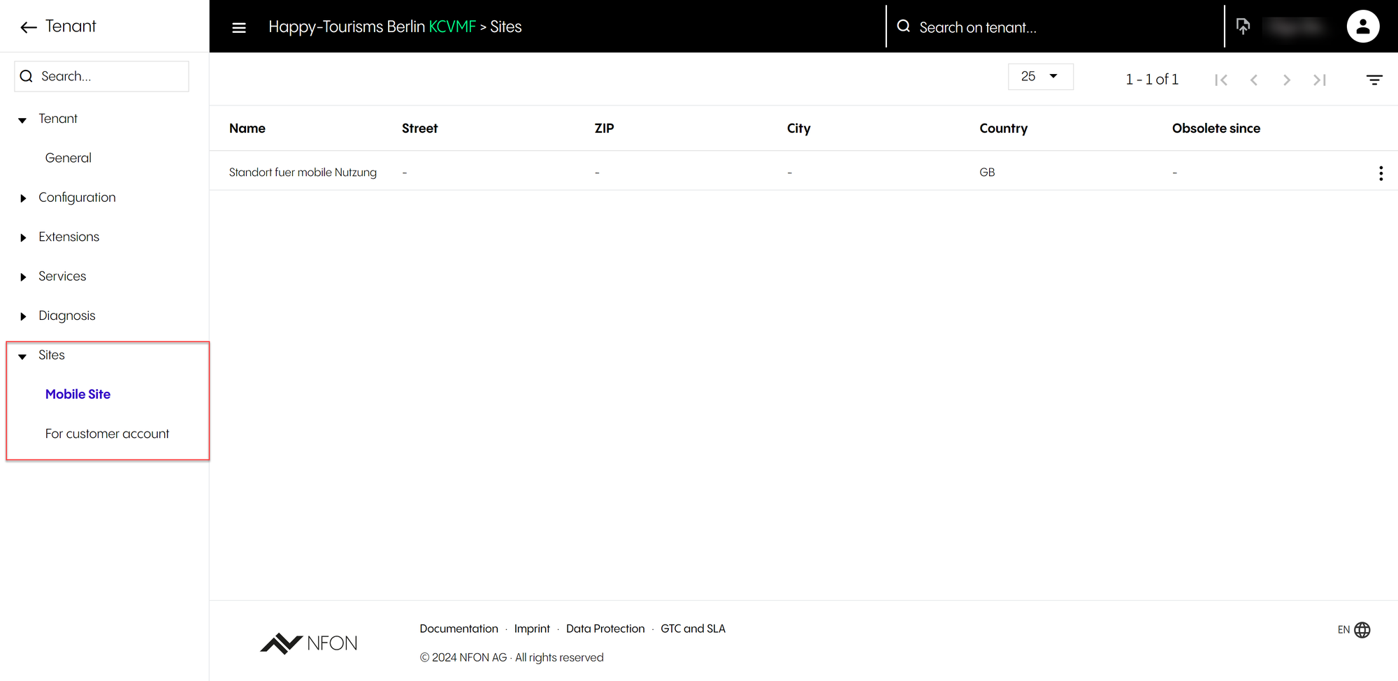 ⇒ Once logged in, you will see the Tenant configuration page.