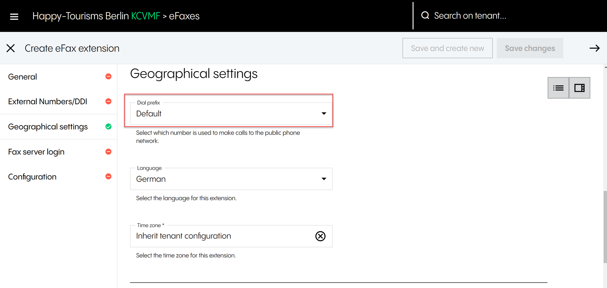 Under Geographical settings, you configure the time zone, which is crucial for configuring a Time Control service.