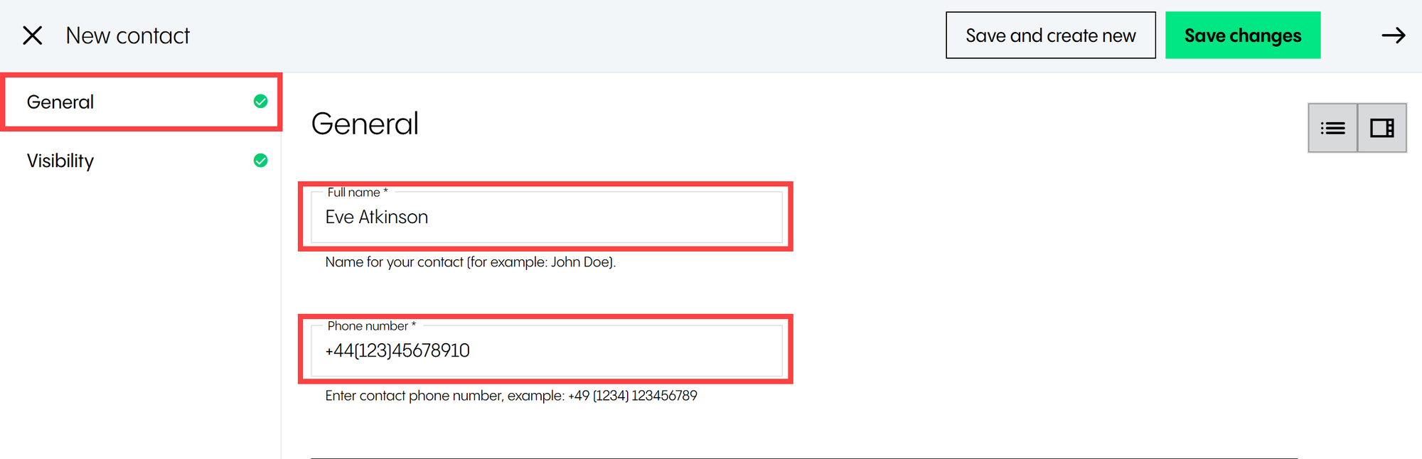 Full name  | Assigns a name to the contact  |