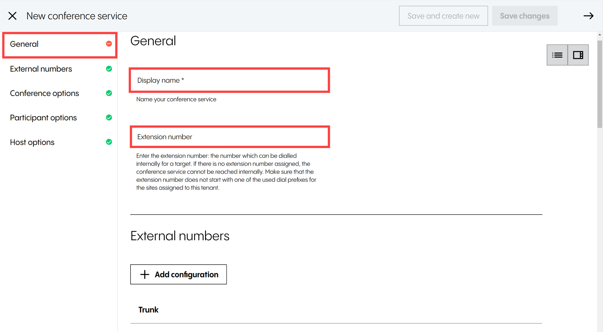 Length of trunk identification number  | Selects the maximum number of DID ranges (trunks) that can be configured on this customer account. It can be set to one, two, three or four digits, i.e. up to 10 trunks (0–9), 100 trunks (0–99), 1000 trunks (0–999) and 10000 trunks (0–9999). For instance, if you set the length to one digit, the customer will only be able to have up to 10 (trunks) on their account. This setting will also be used for outbound trunk configuration in Phone Extensions.  |
