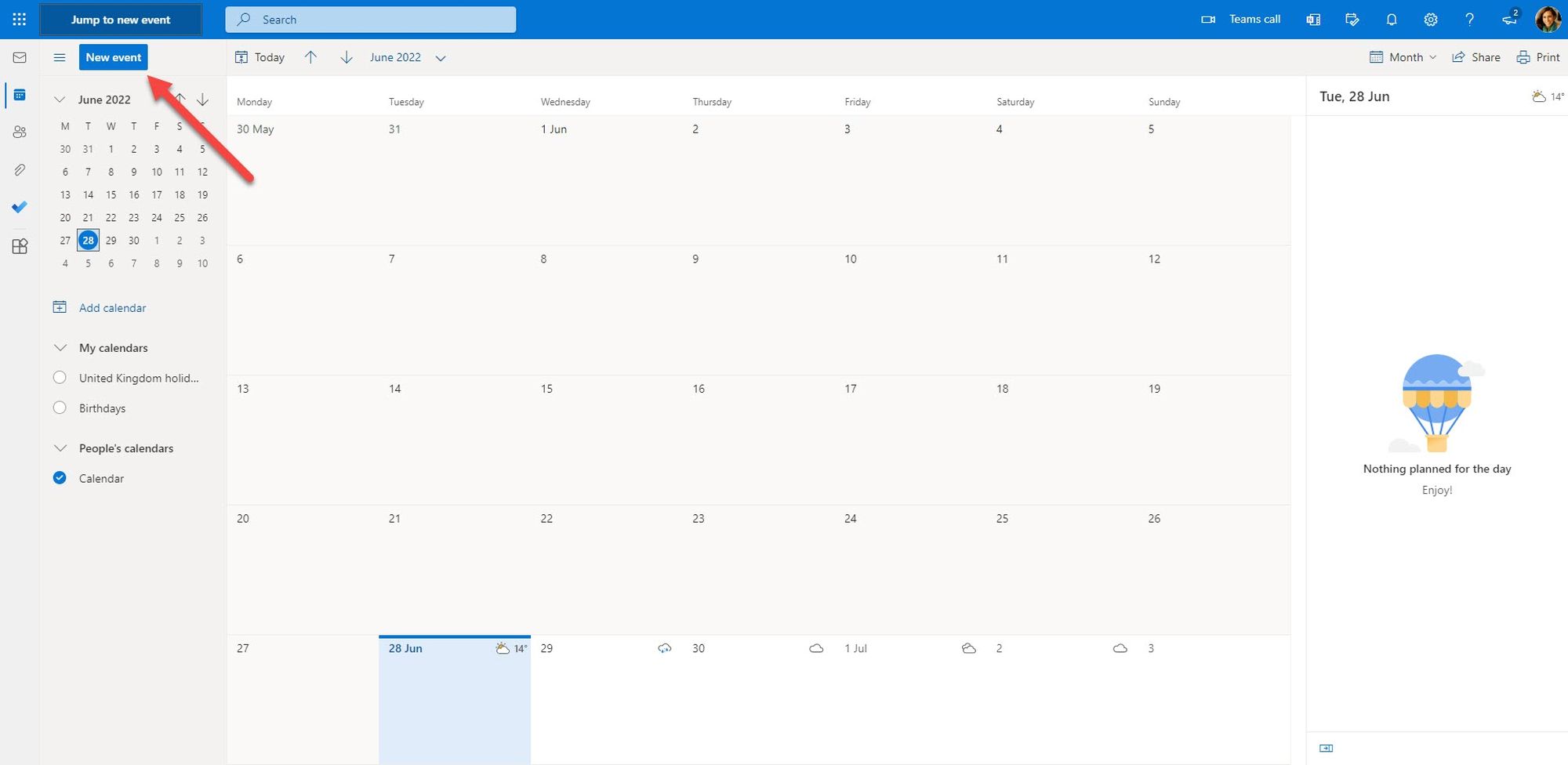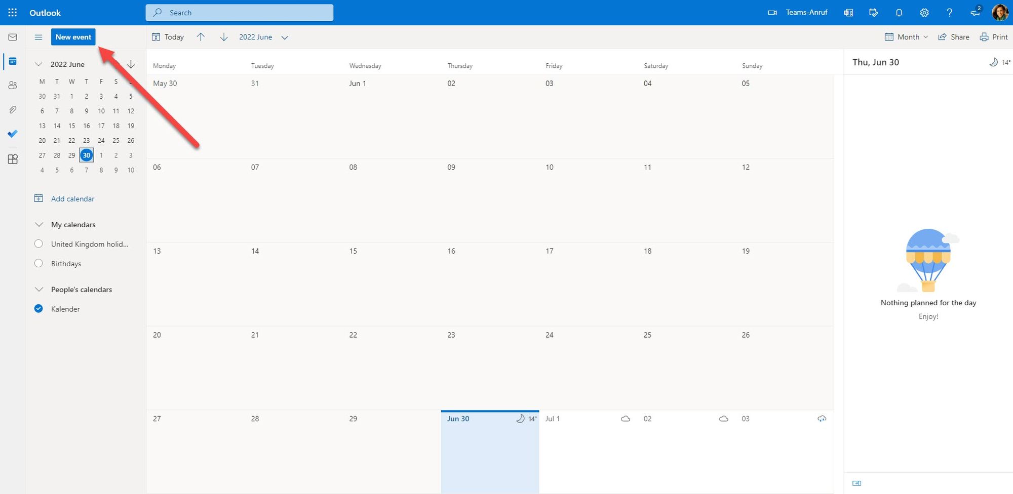 2. Click on your Calendar and create a New event. A new window for the configuration of the event opens.