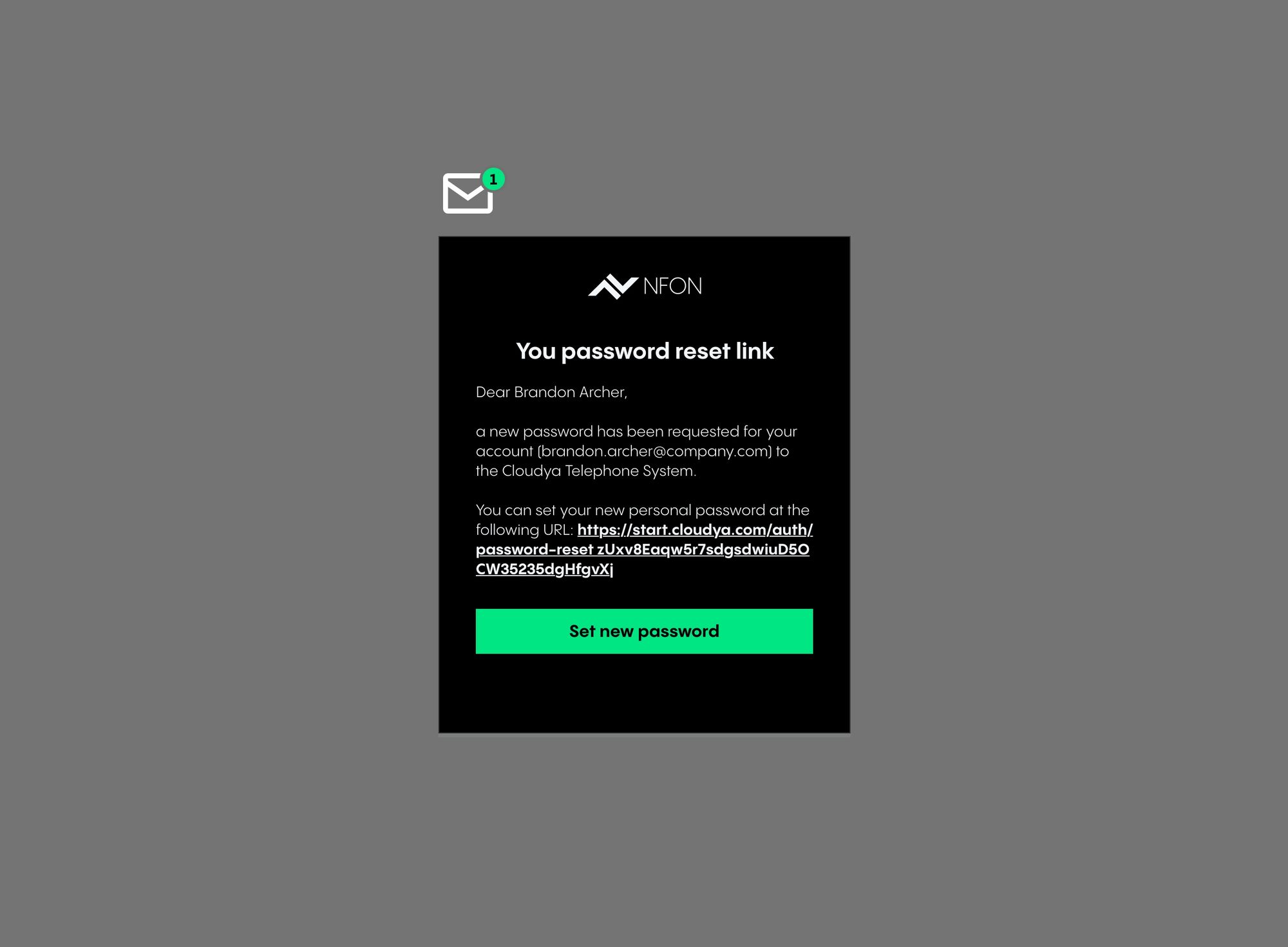 ⇒ A new page for setting up a new password will open.