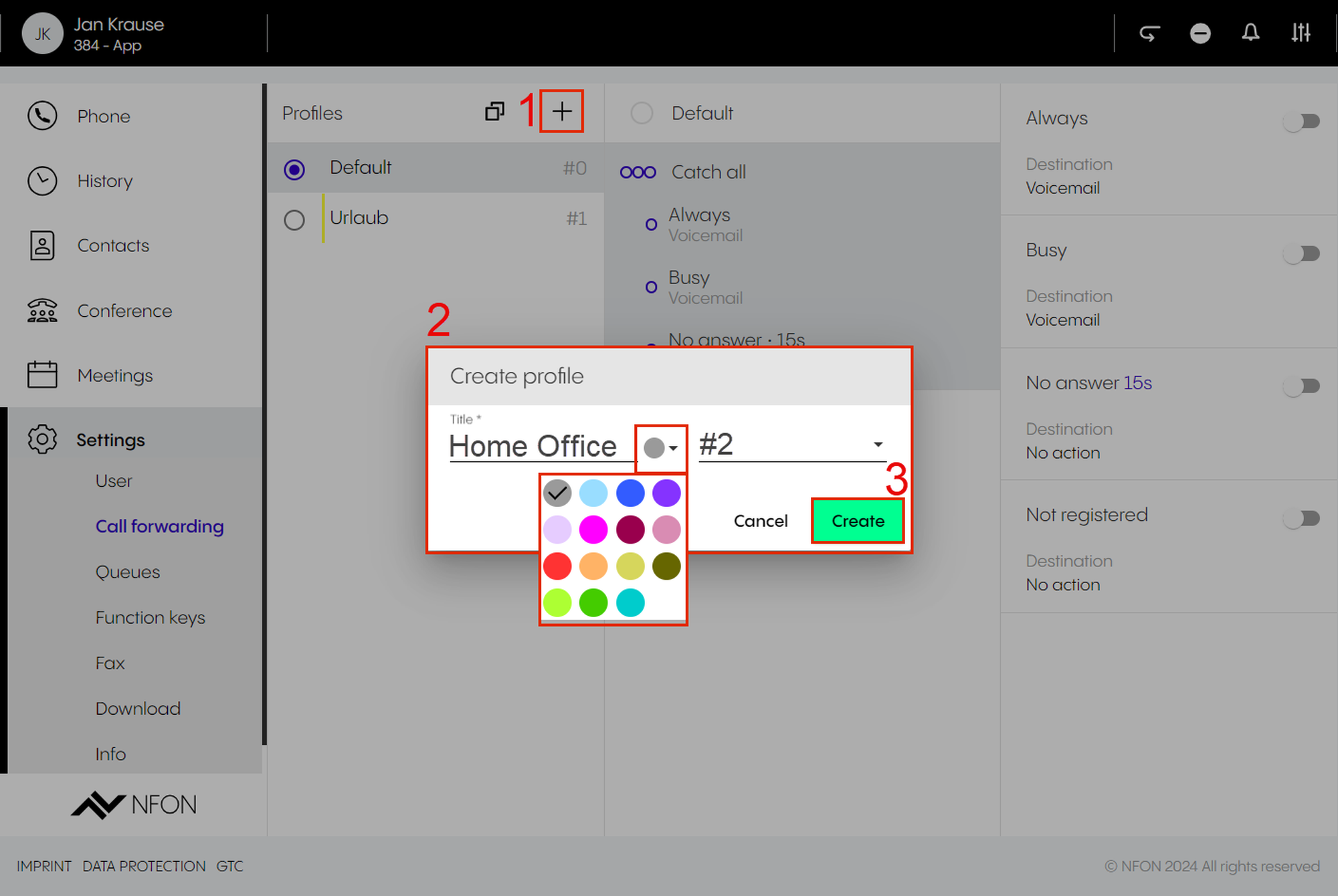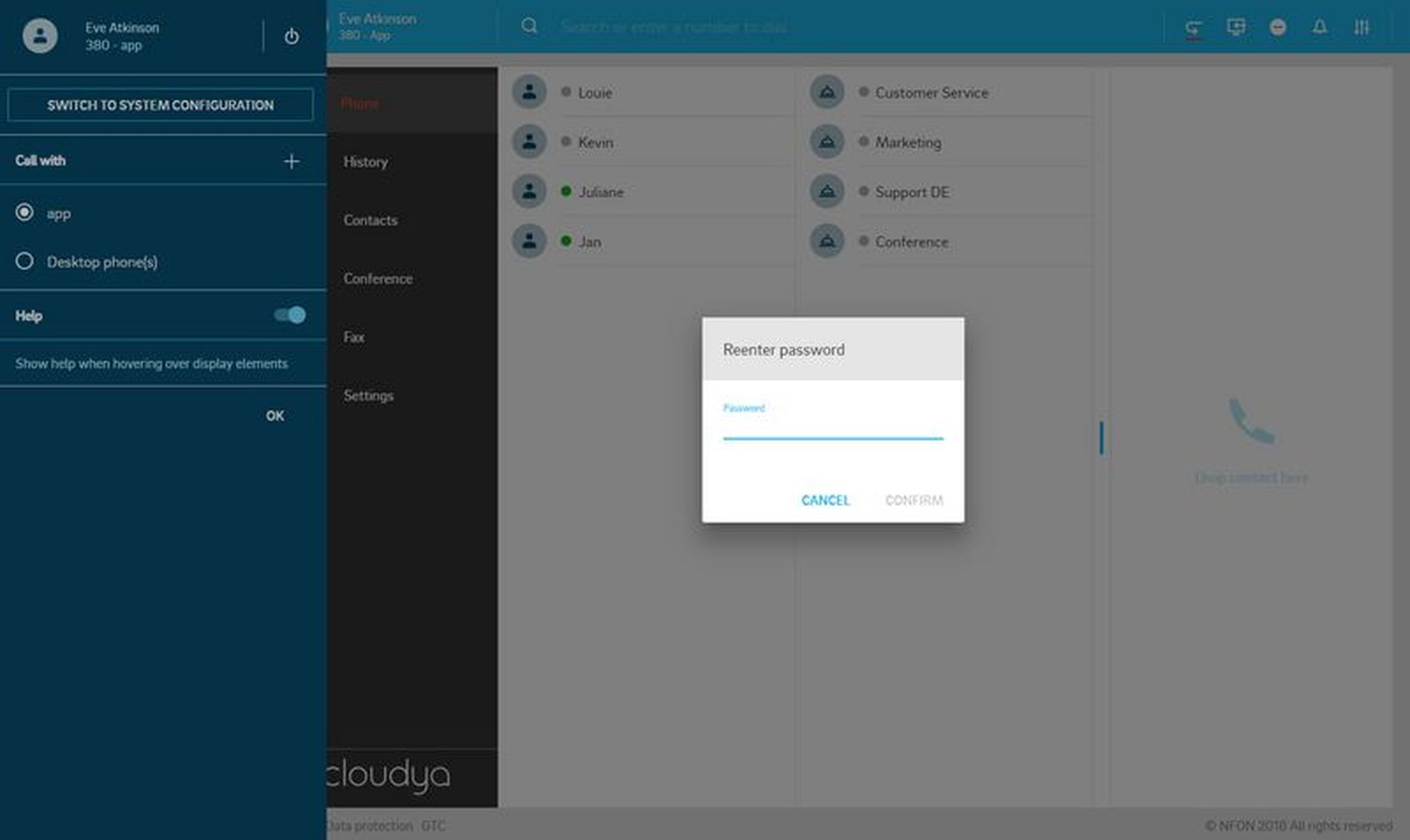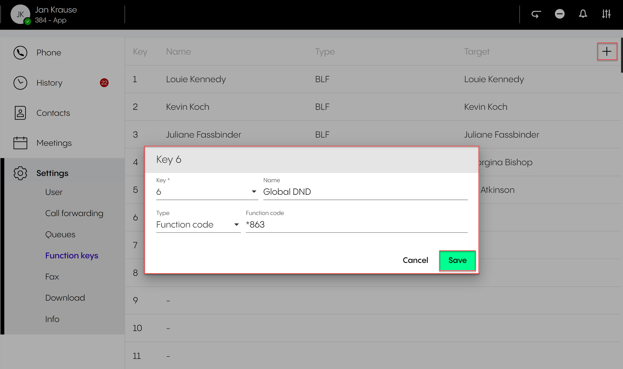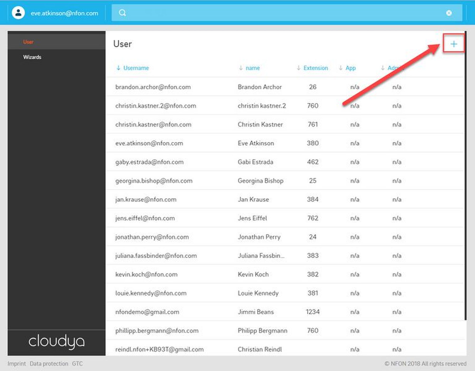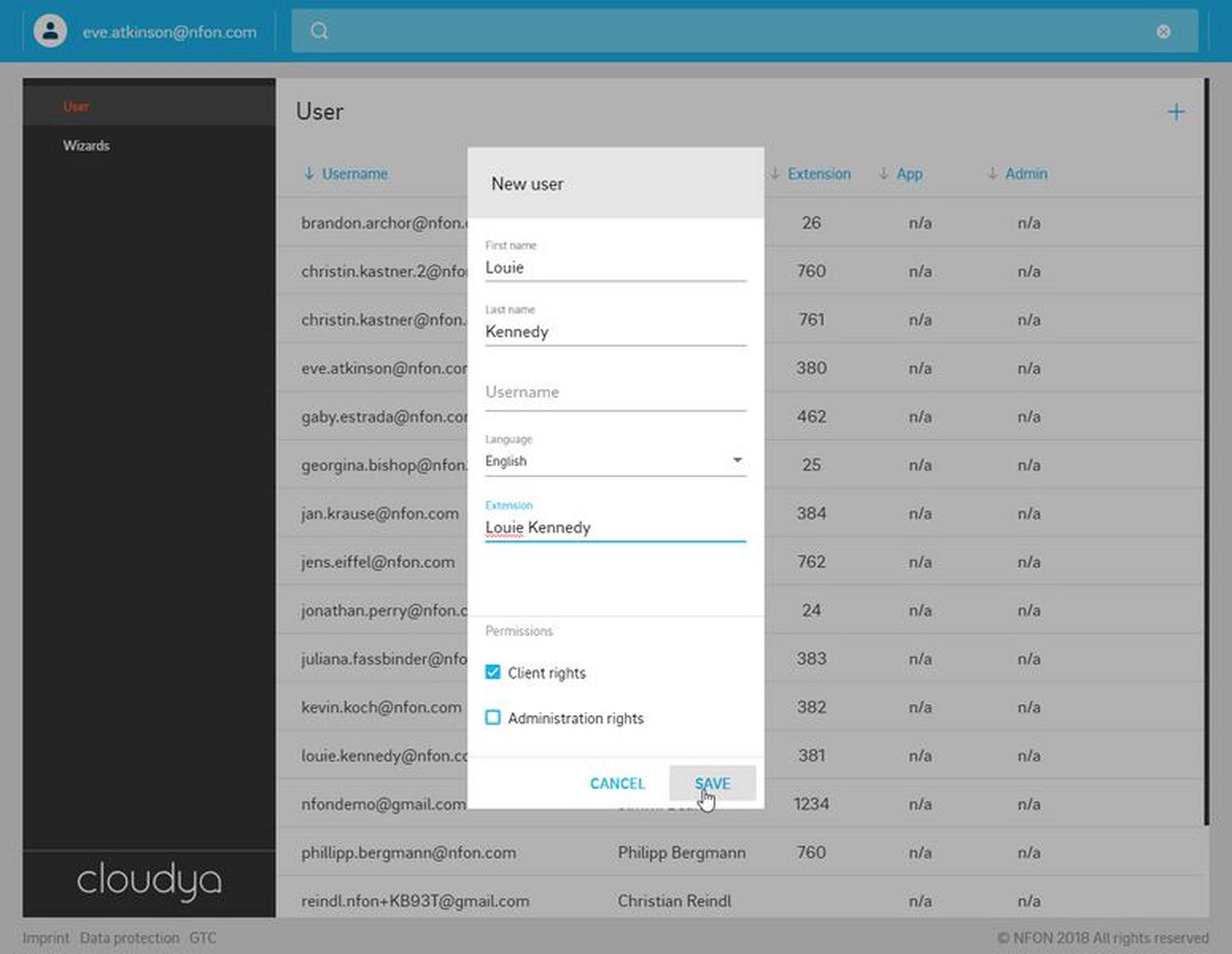 As soon as you have created the user via the administration portal and have an extension number for this user, the user can be created in the system configuration of the app. The extension number from the administration portal needs then be connected to the user in the system configuration of the app.