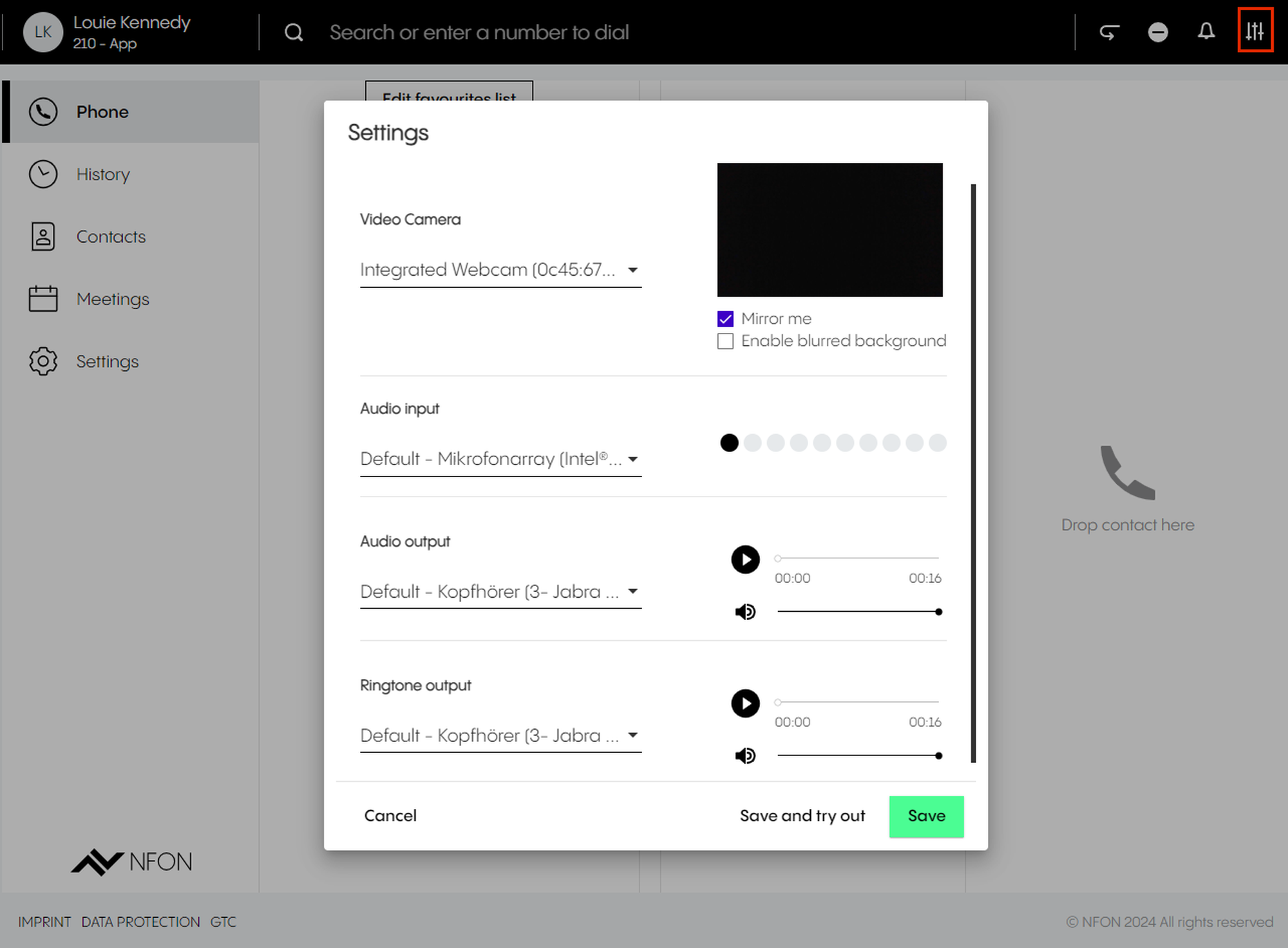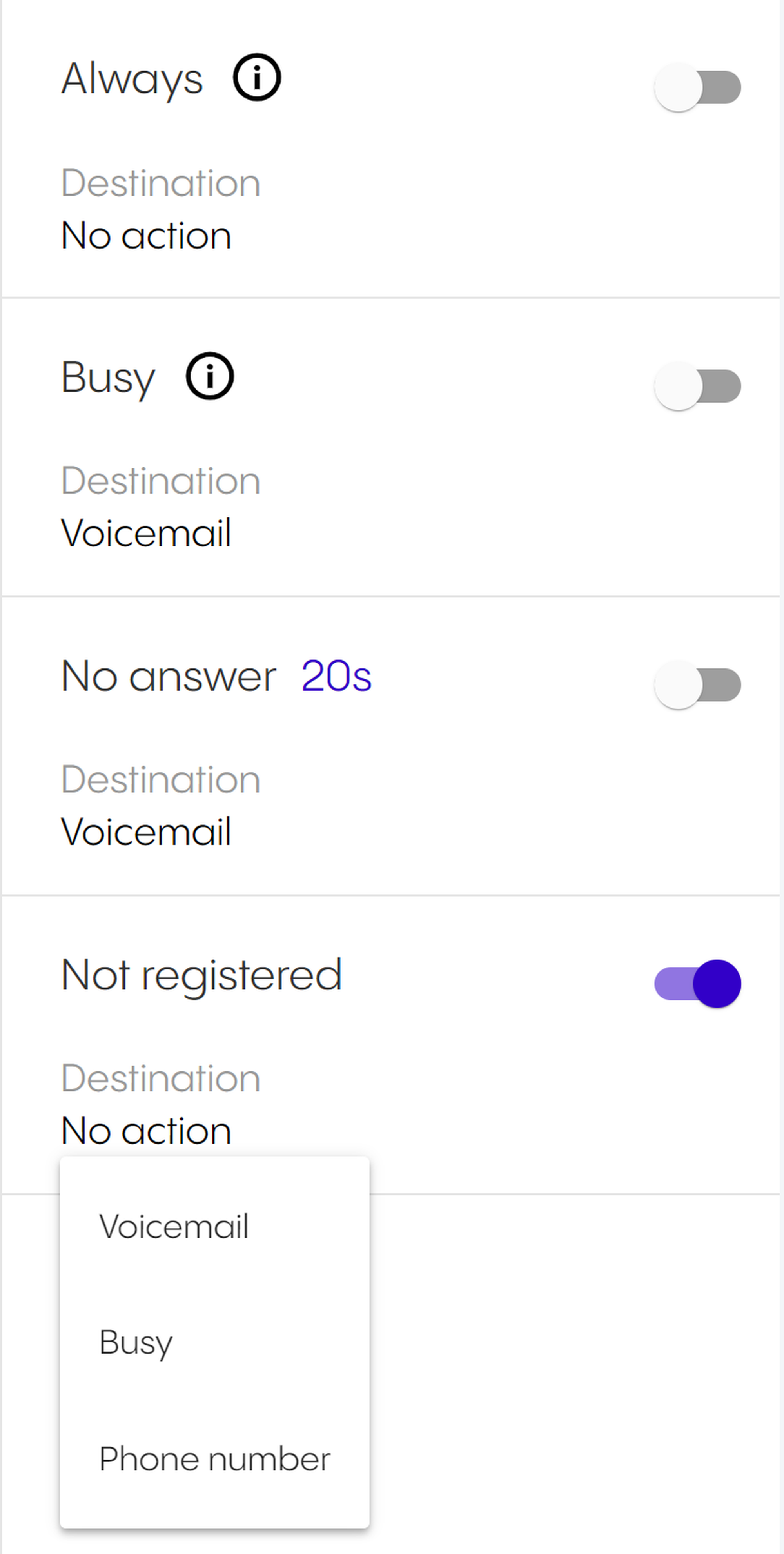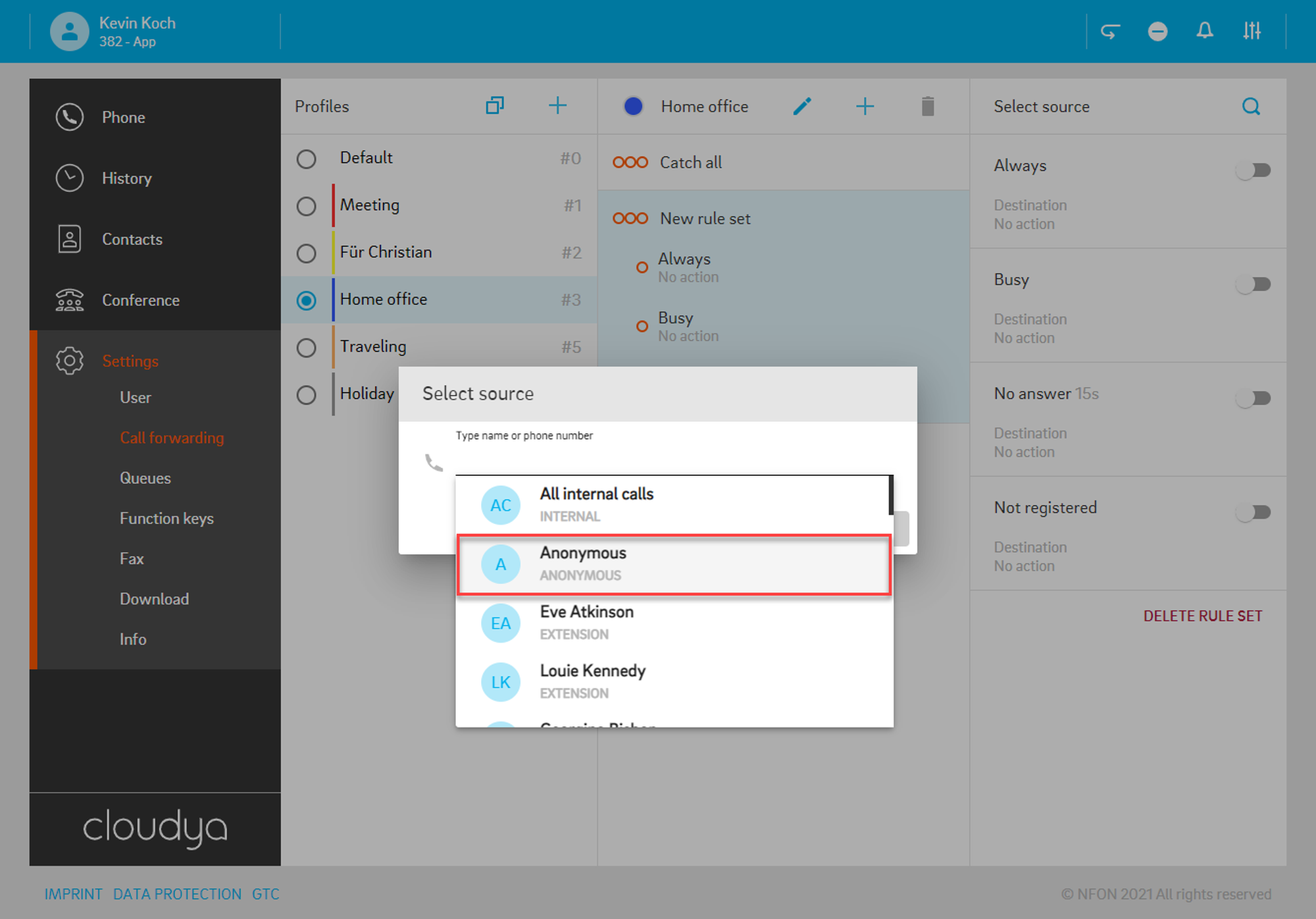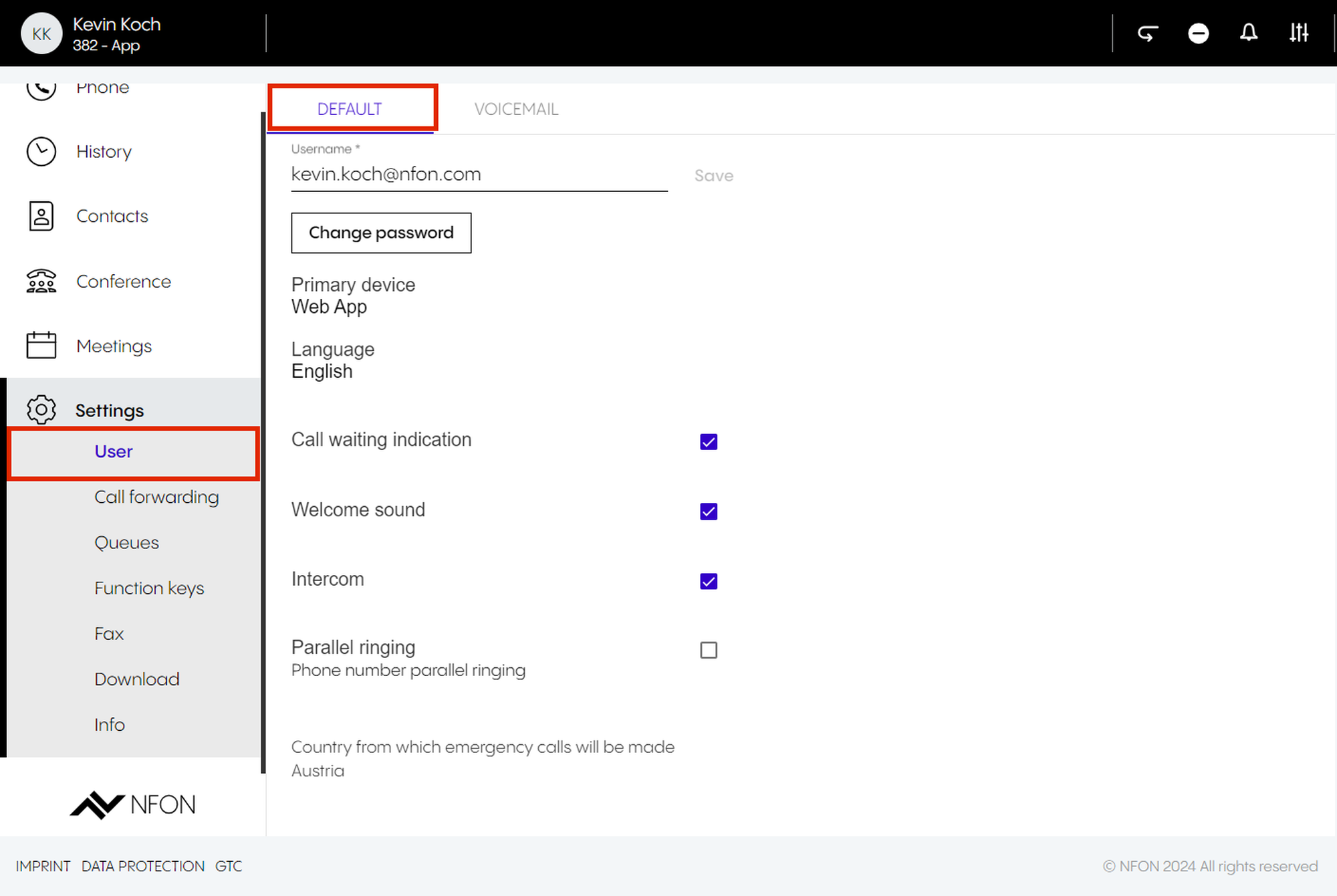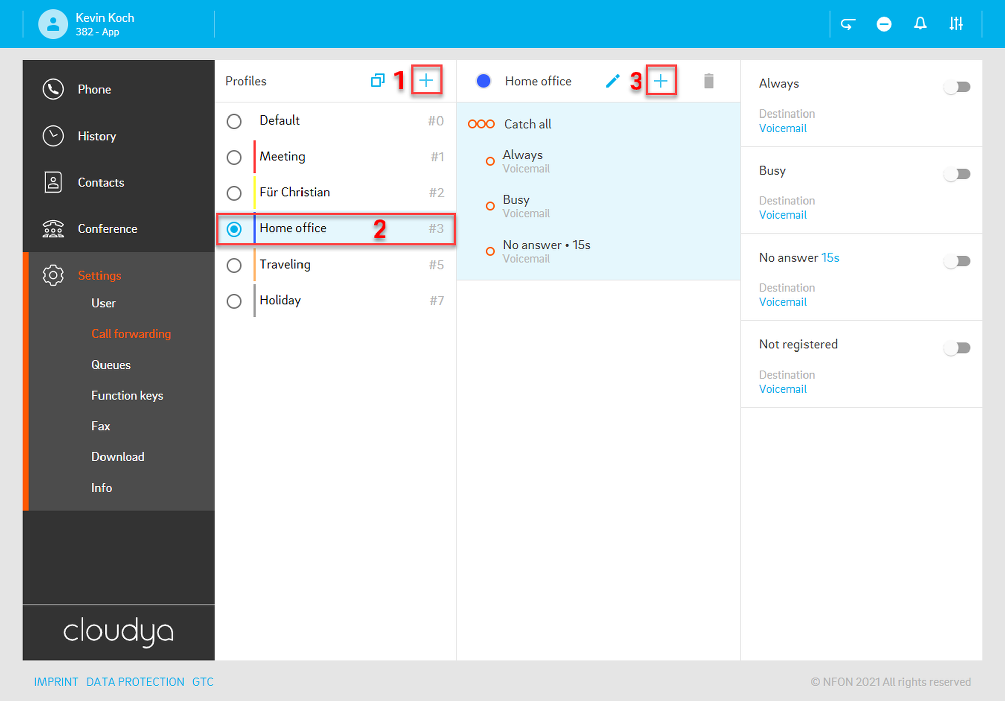 Per default, the app is set as your primary device – the target you will call with. This means, once you have an incoming call, your app will ring. If you want to change this, select a different device.