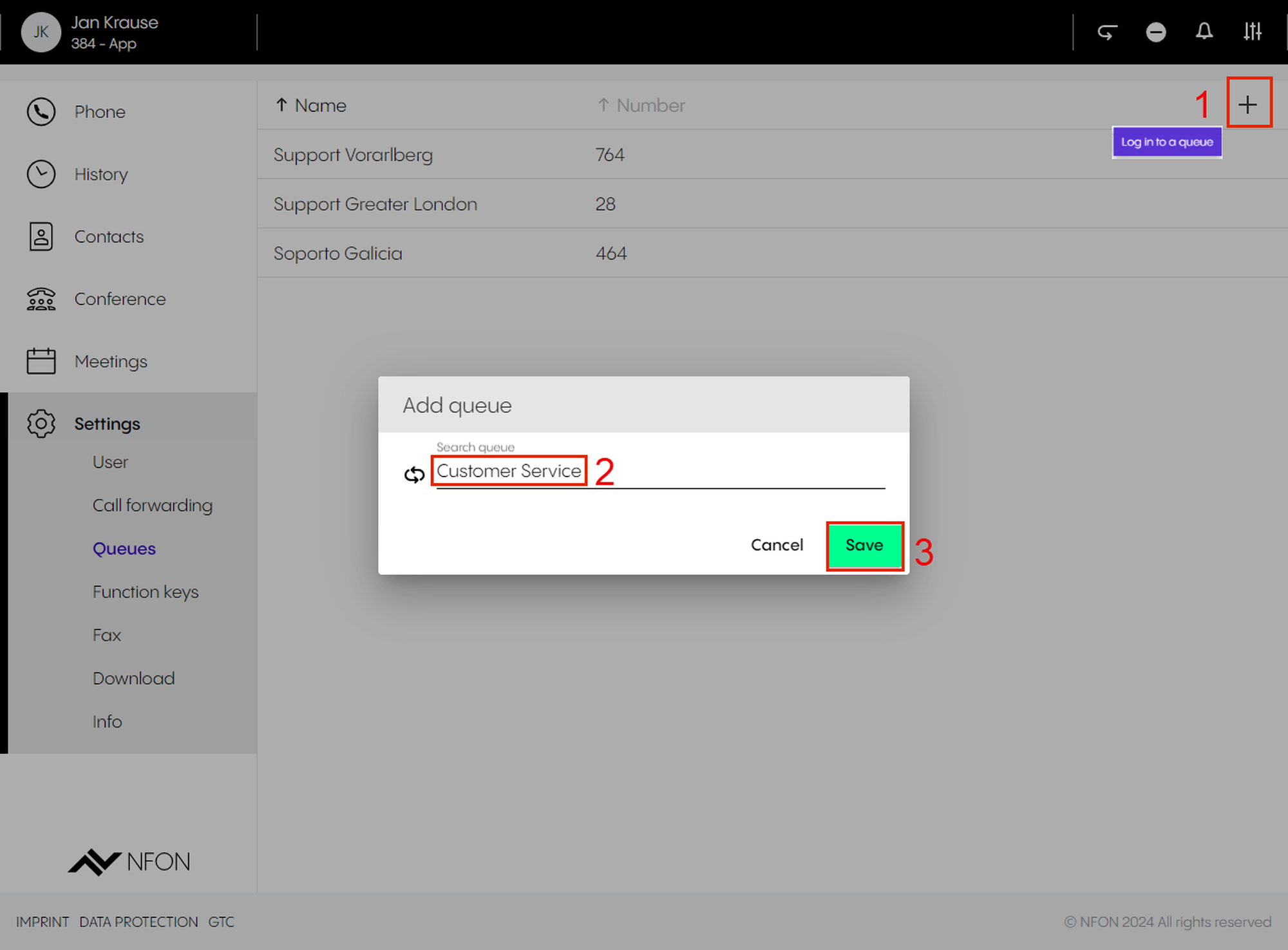 You can skip this step if you are already logged in to your DFN VoIP Centrex account.