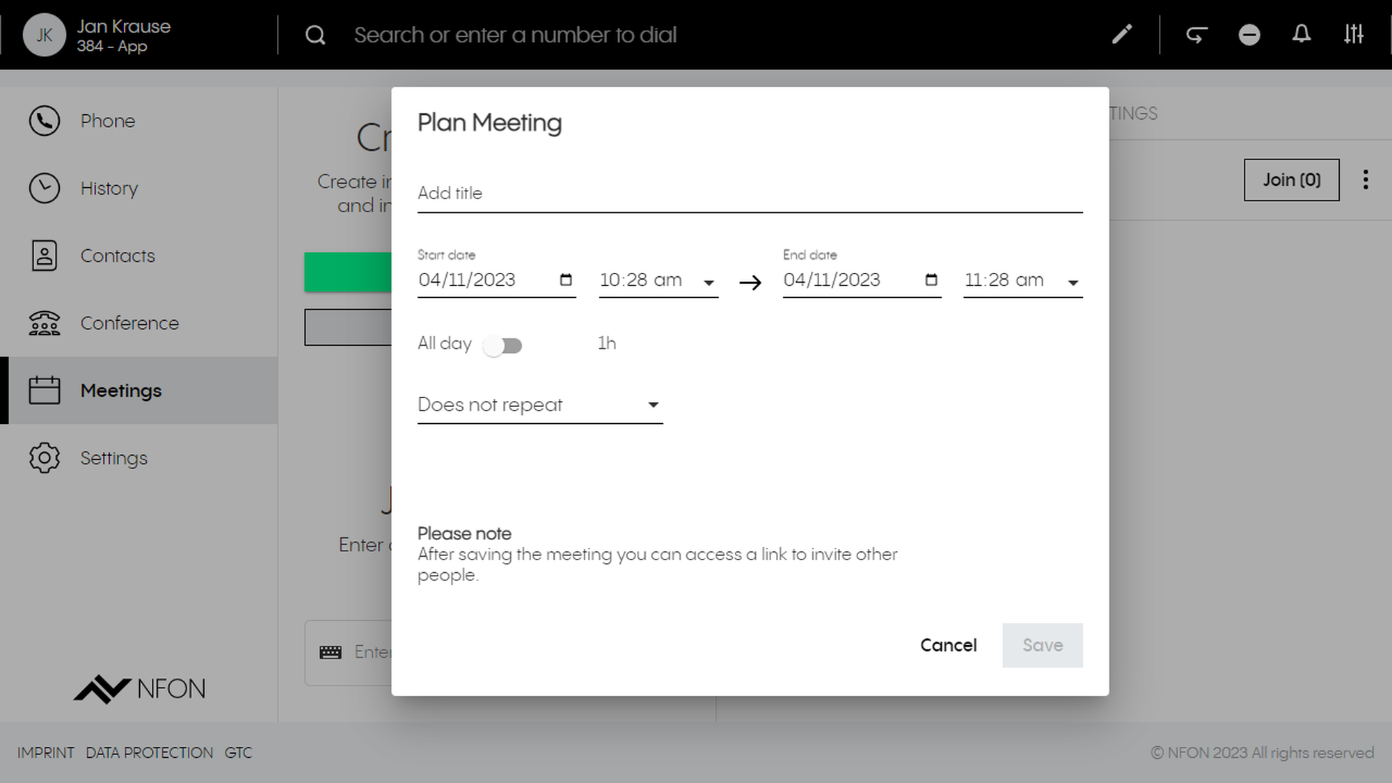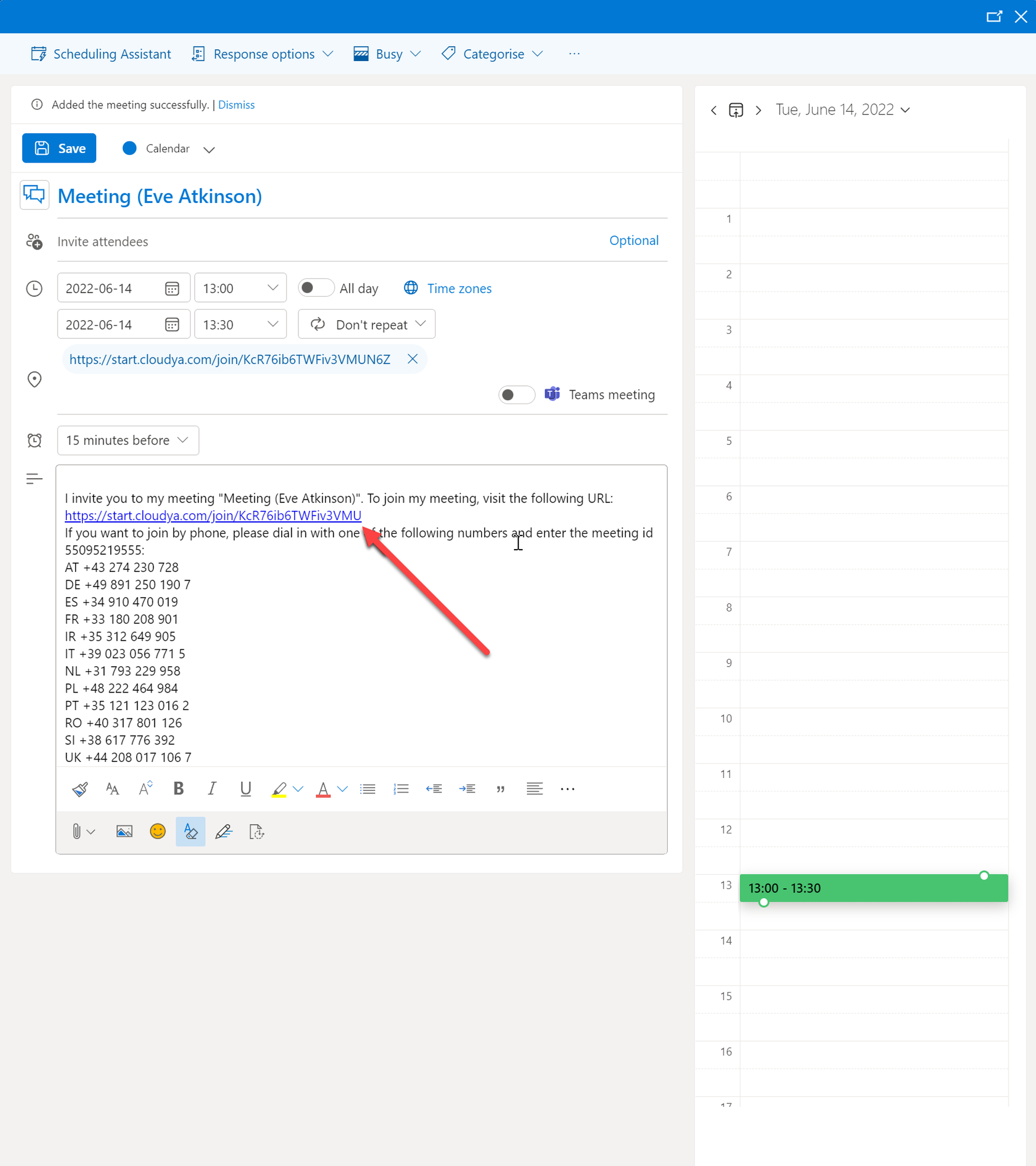 5. You have now created a DFN VoIP Centrex meeting. You will also find the URL for your DFN VoIP Centrex meeting in the event info of your calendar.