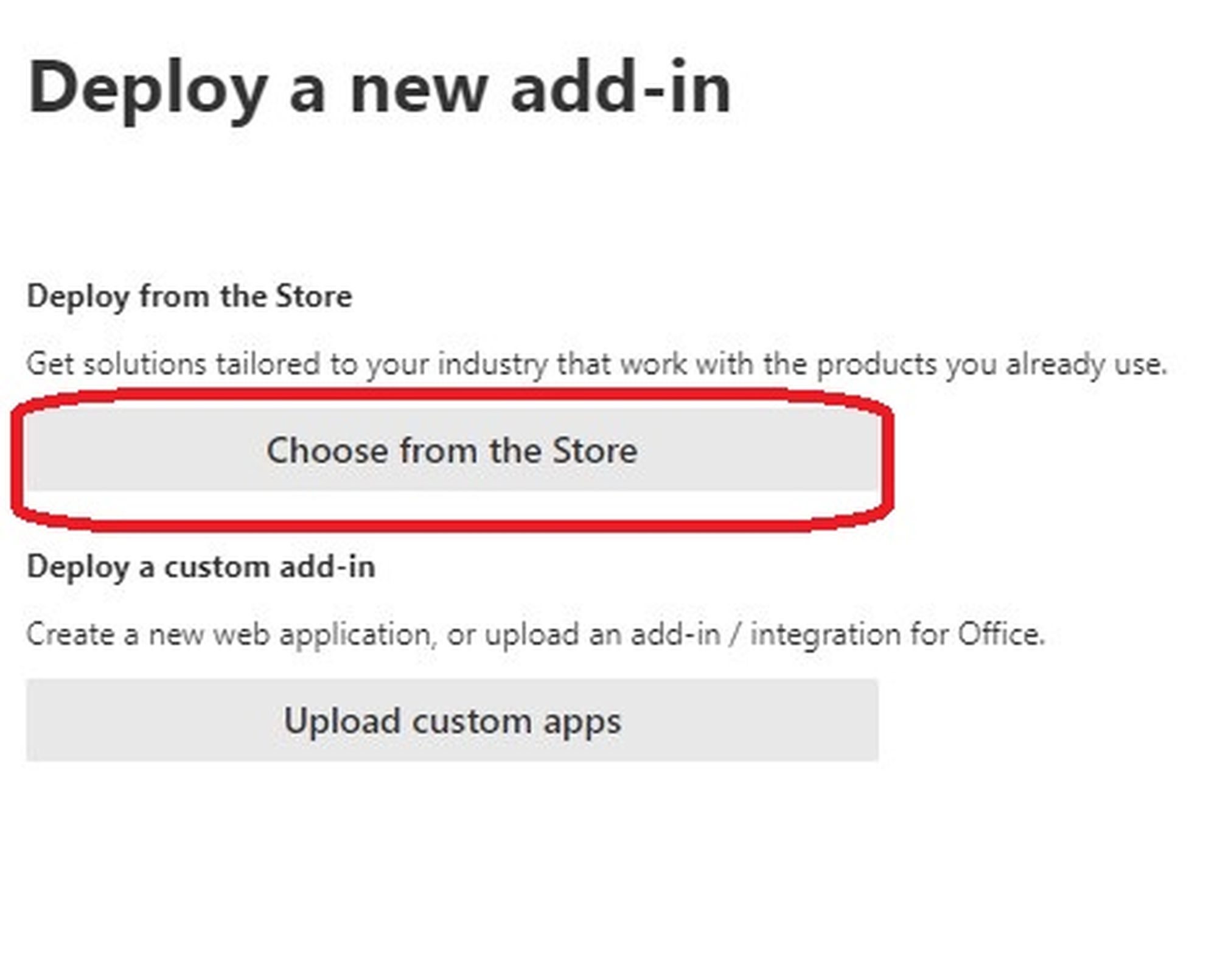 4. In the Deploy a new add-in window, click Next and then Choose from the Store.