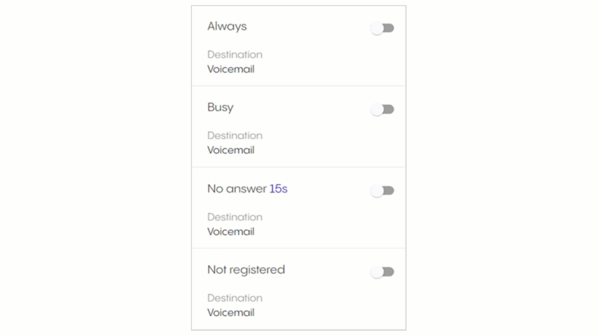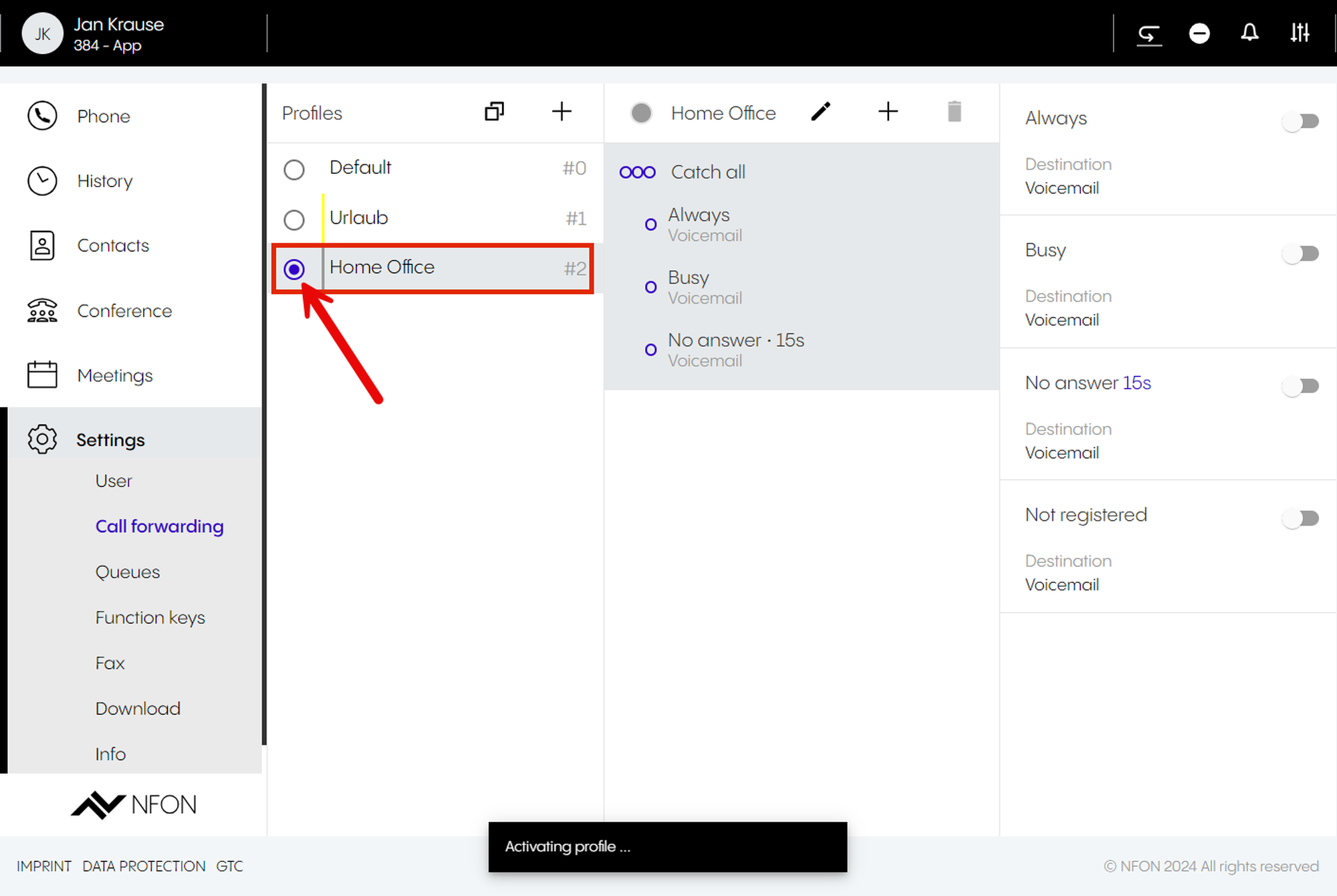 | Call Forwarding: Select the call forwarding profile you wish to activate | |