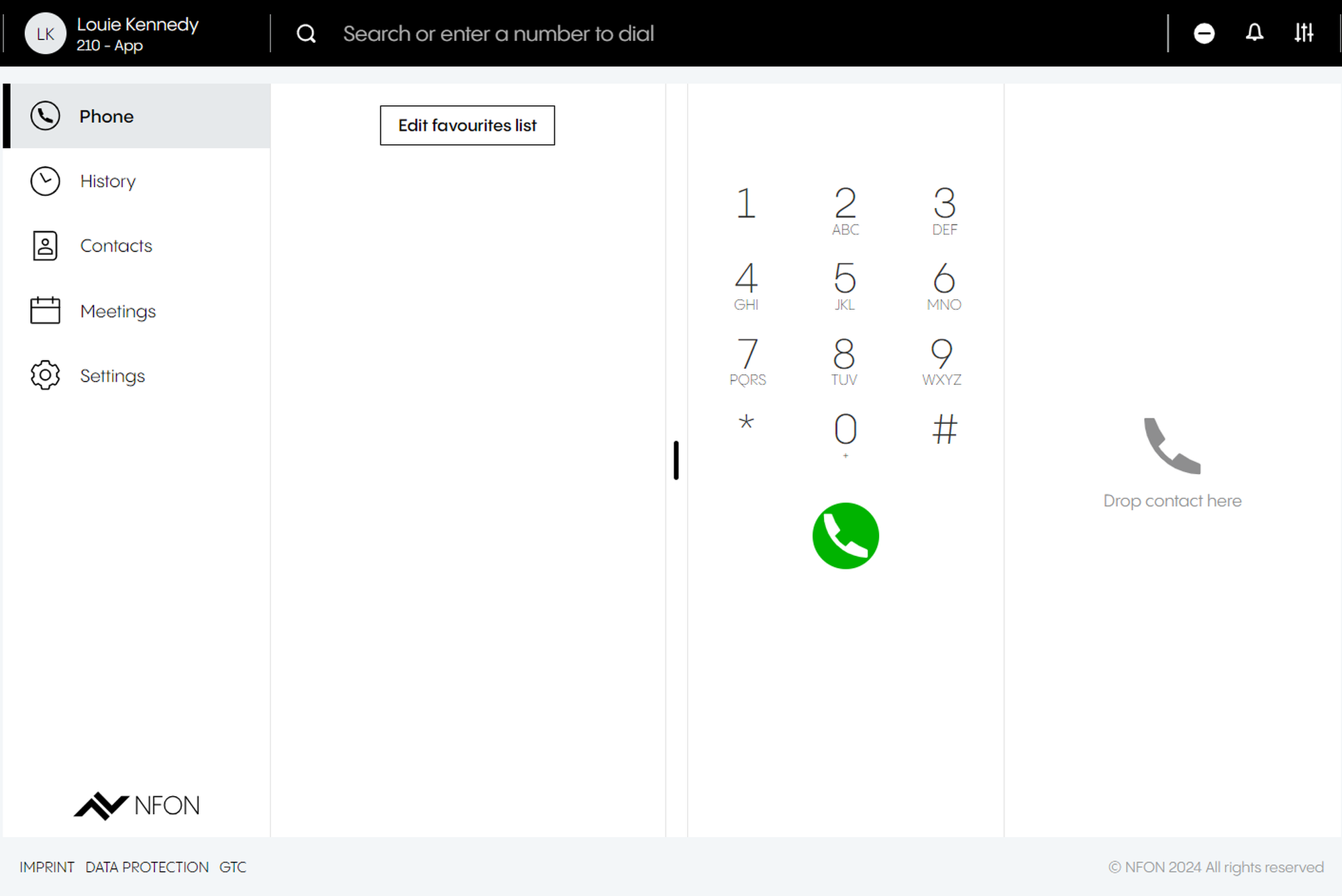 *The favourites list is a list of the BLF keys from your device. If you haven't set any BLF keys, or the user is new, this field will remain empty.