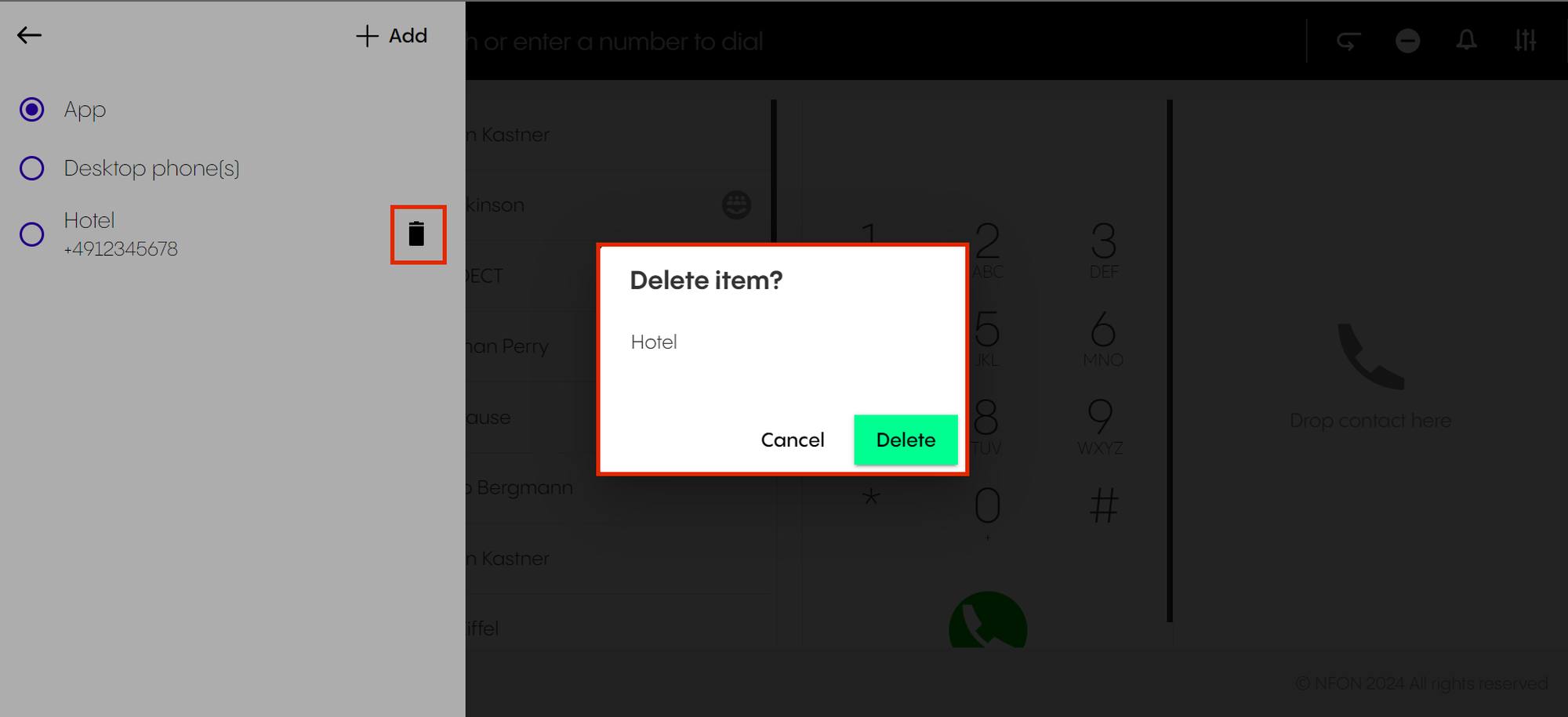 Deleting a device to call with