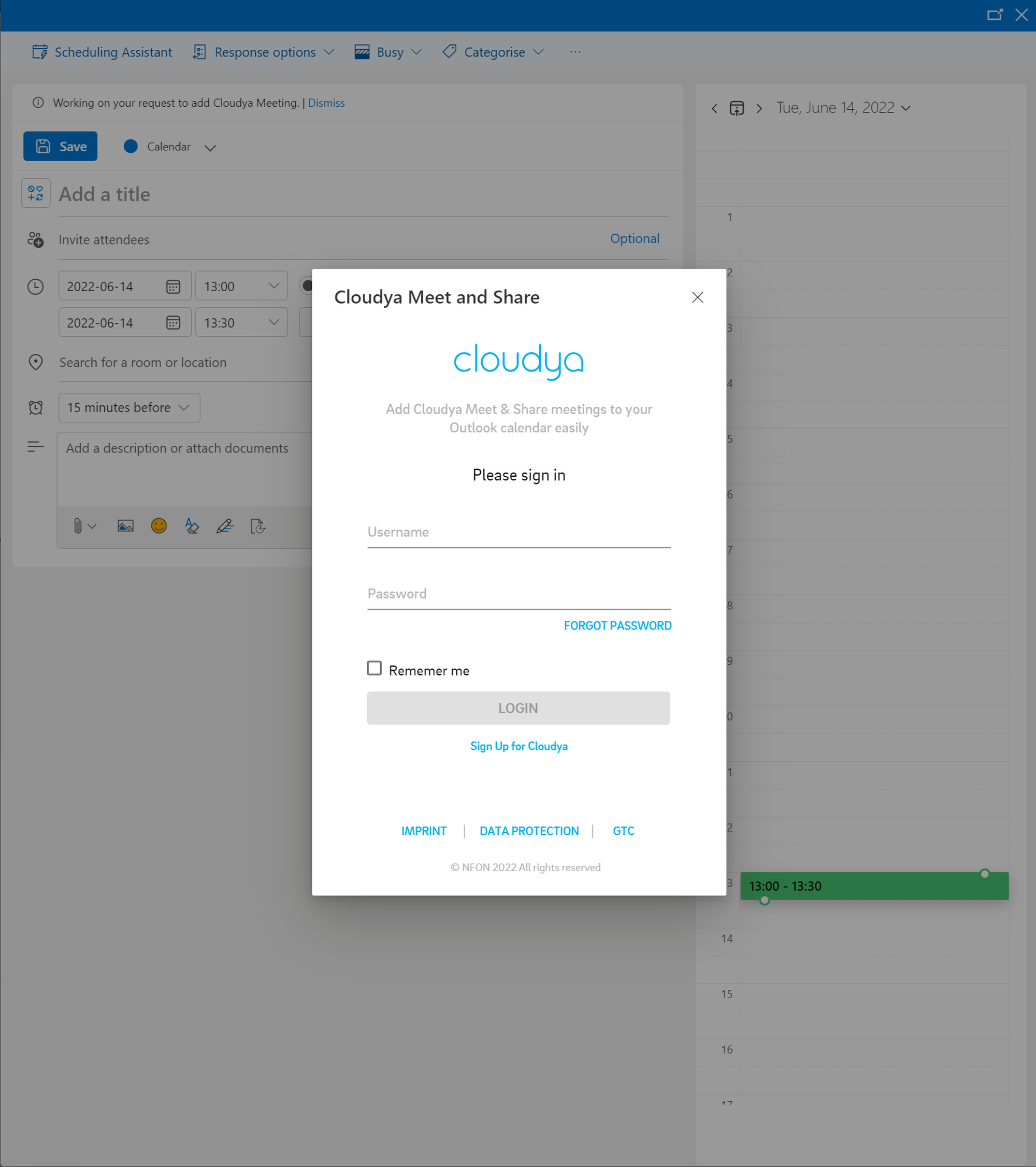 Creating a DFN VoIP Centrex Meet & Share Meeting in Outlook