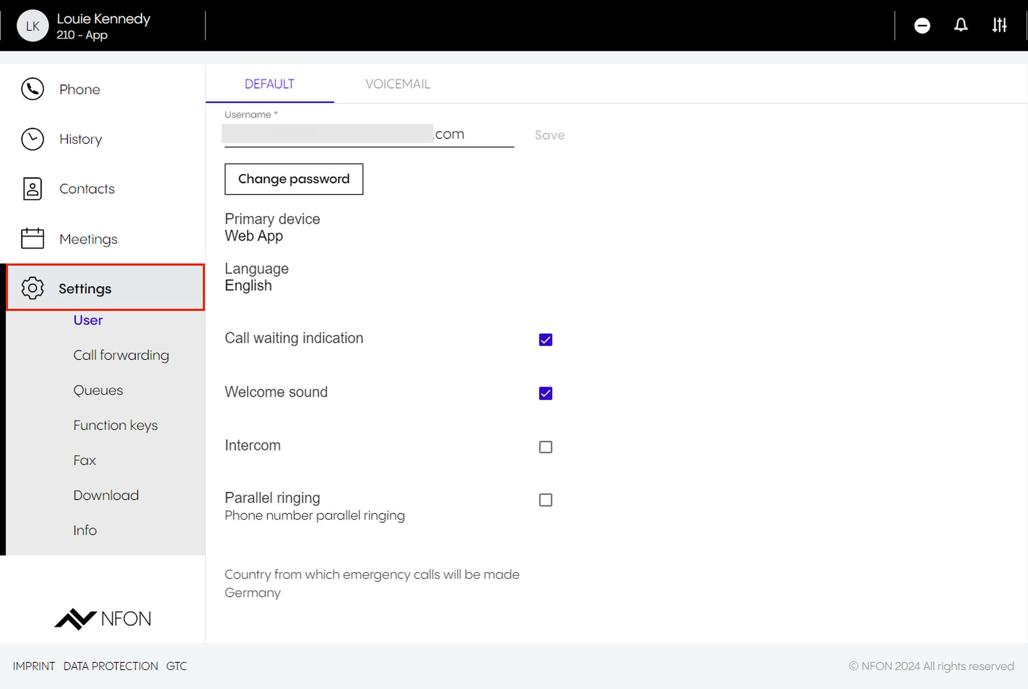 If you are using a different language, the standard language for the DFN VoIP Centrex add-in will be English.