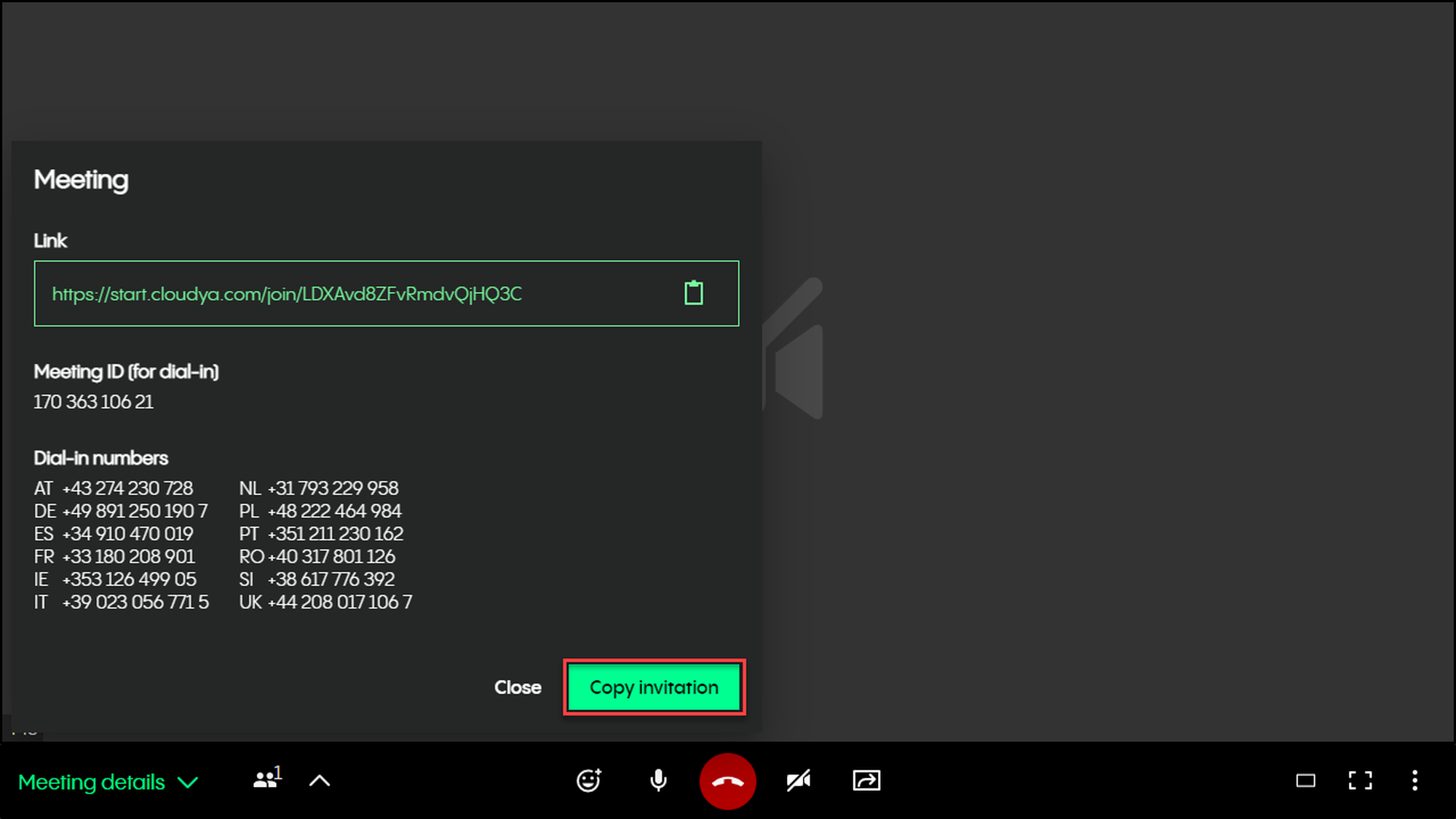 View meeting details (copy invitation)