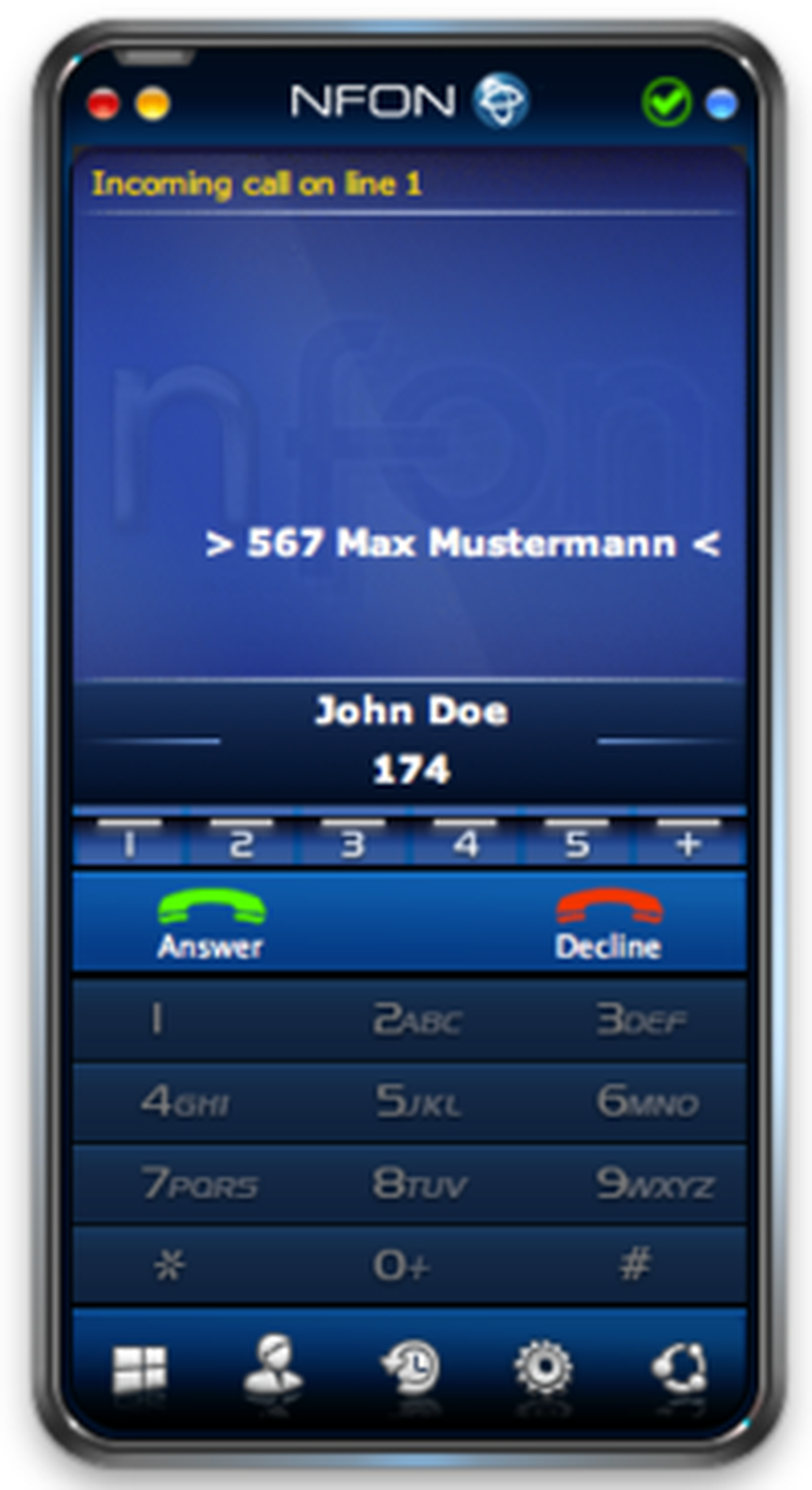 After pressing Login, the system adds the configuration to your iSoftPhone. After a restart, it is now ready for use. The name entered for the extension is now displayed.