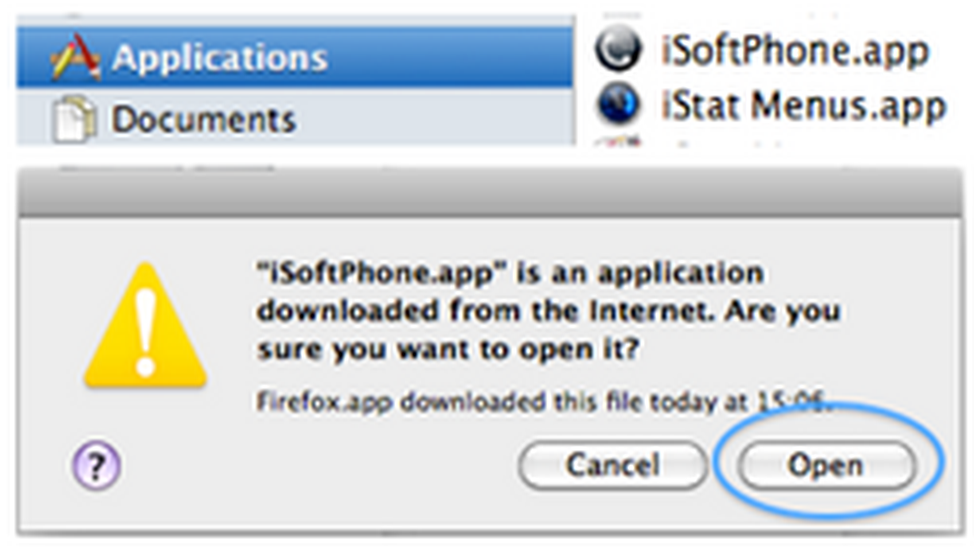 4. After double-clicking on the iSoftPhone.app in the Programme folder to start up the programme, confirm the opening of the software.