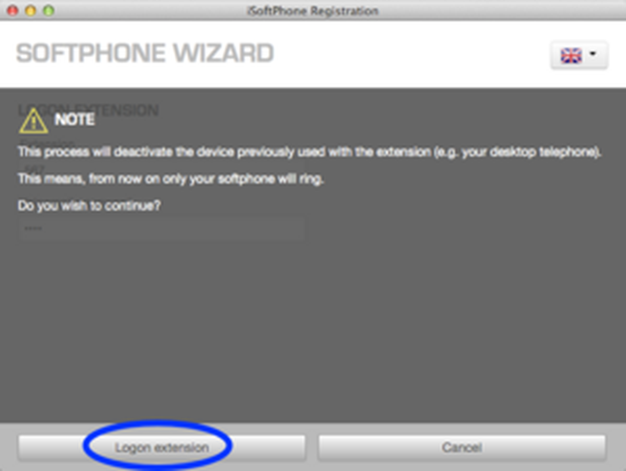 However, please note that this process deactivates the existing end device (for example a snom desk telephone). I.e., from now on, only the iSoftPhone rings.