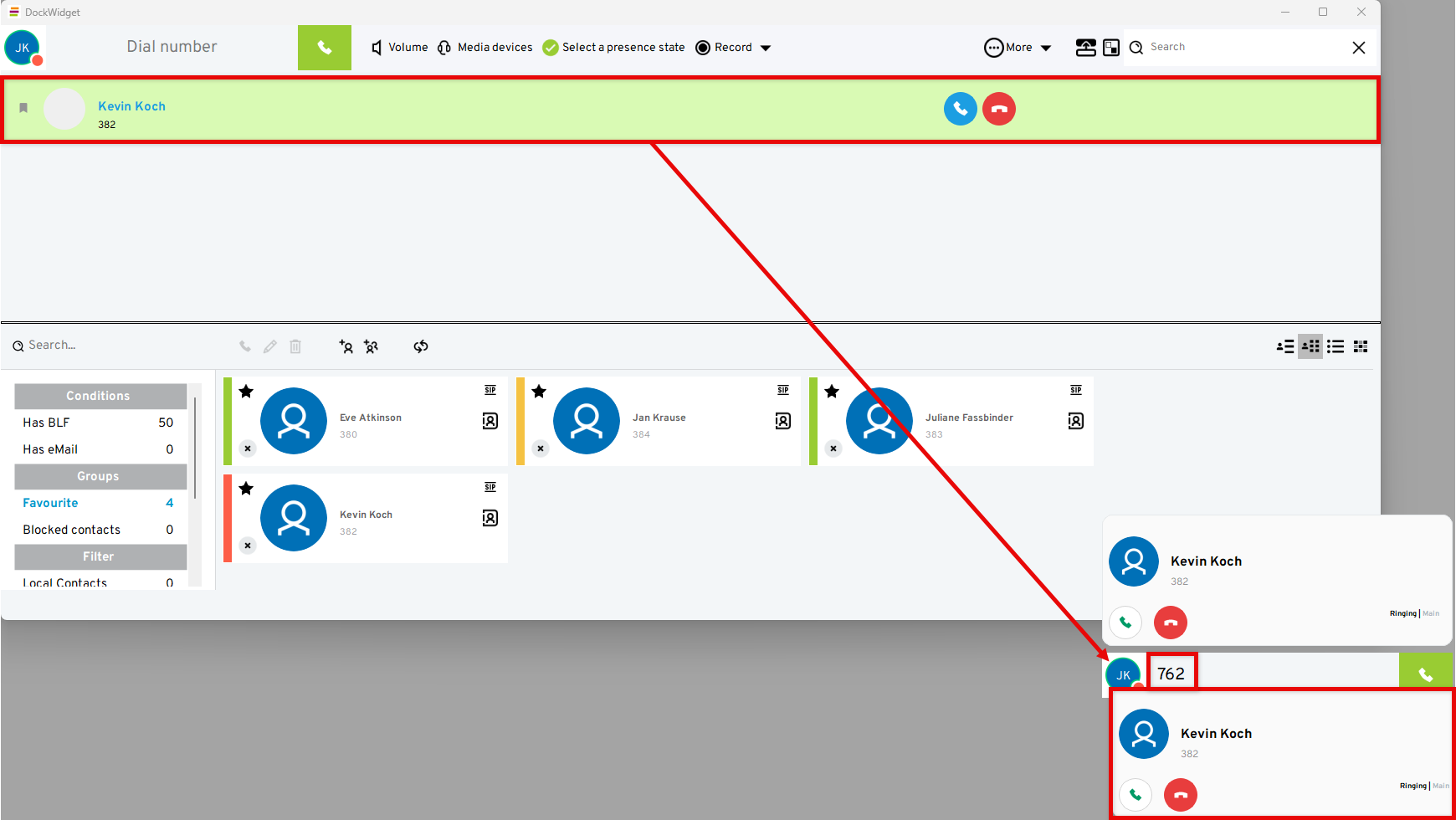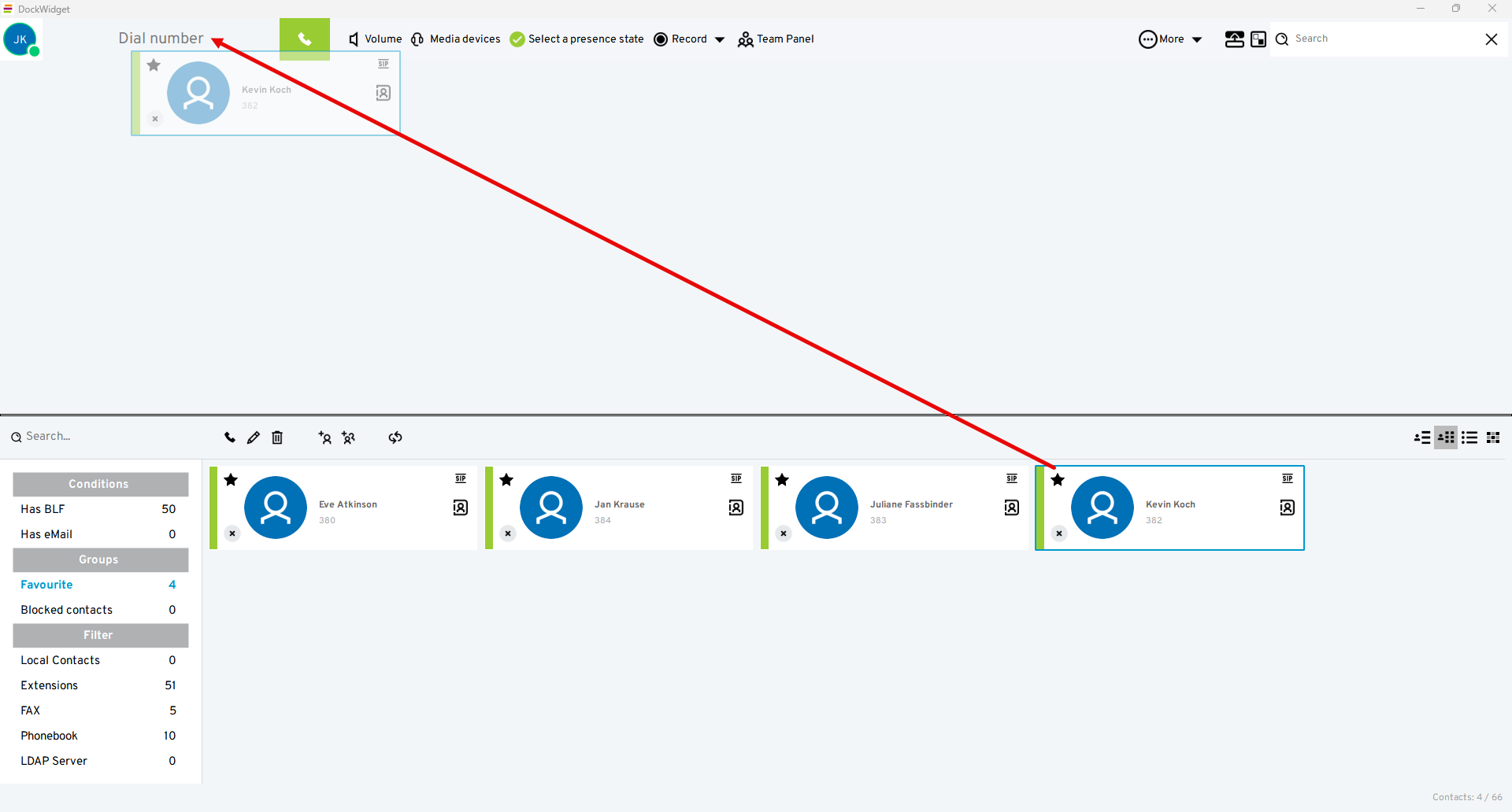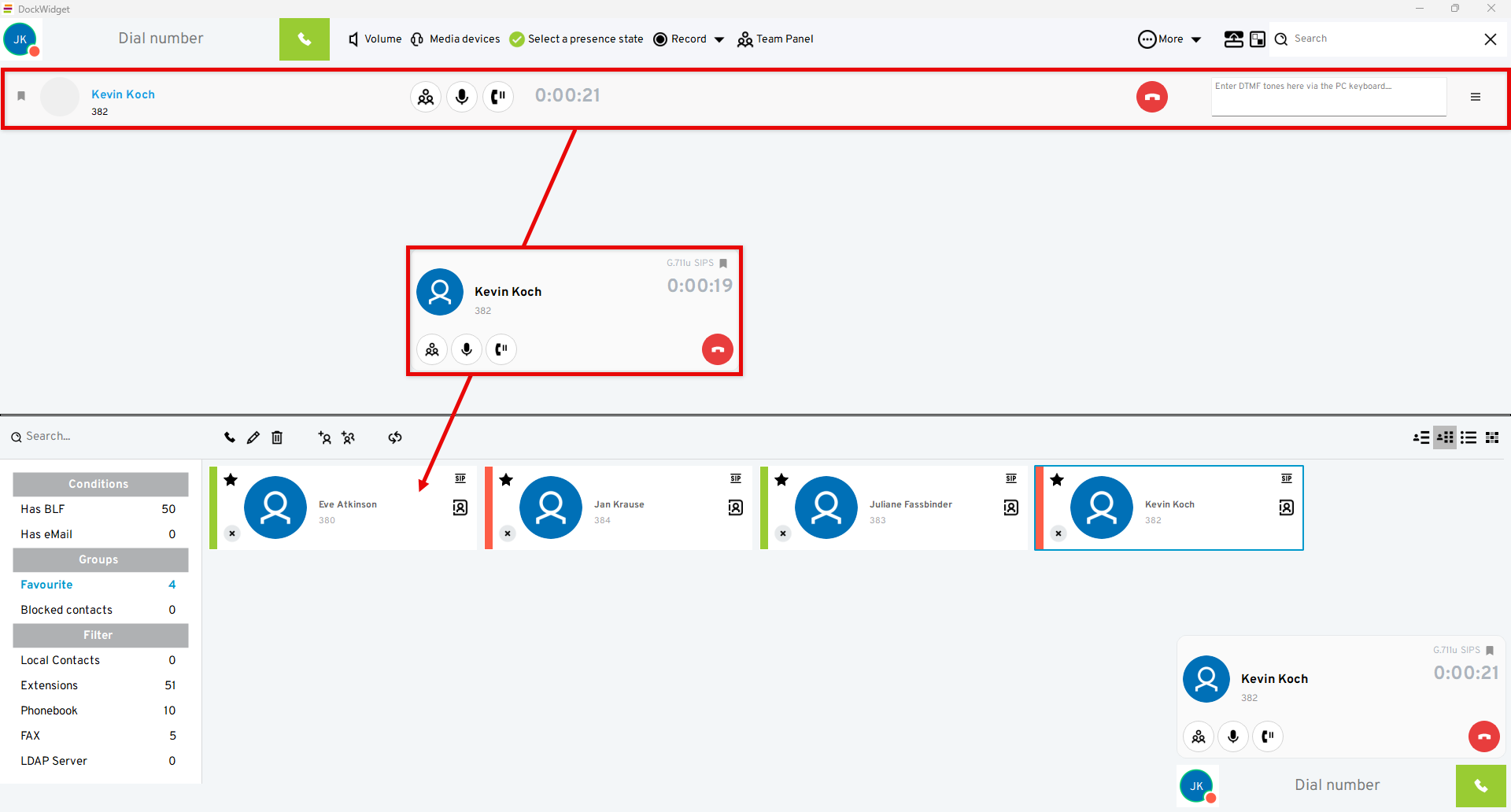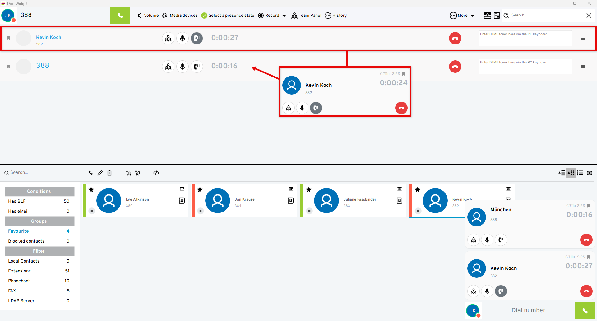 Dial the number by clicking on the handset symbol or using the enter key.