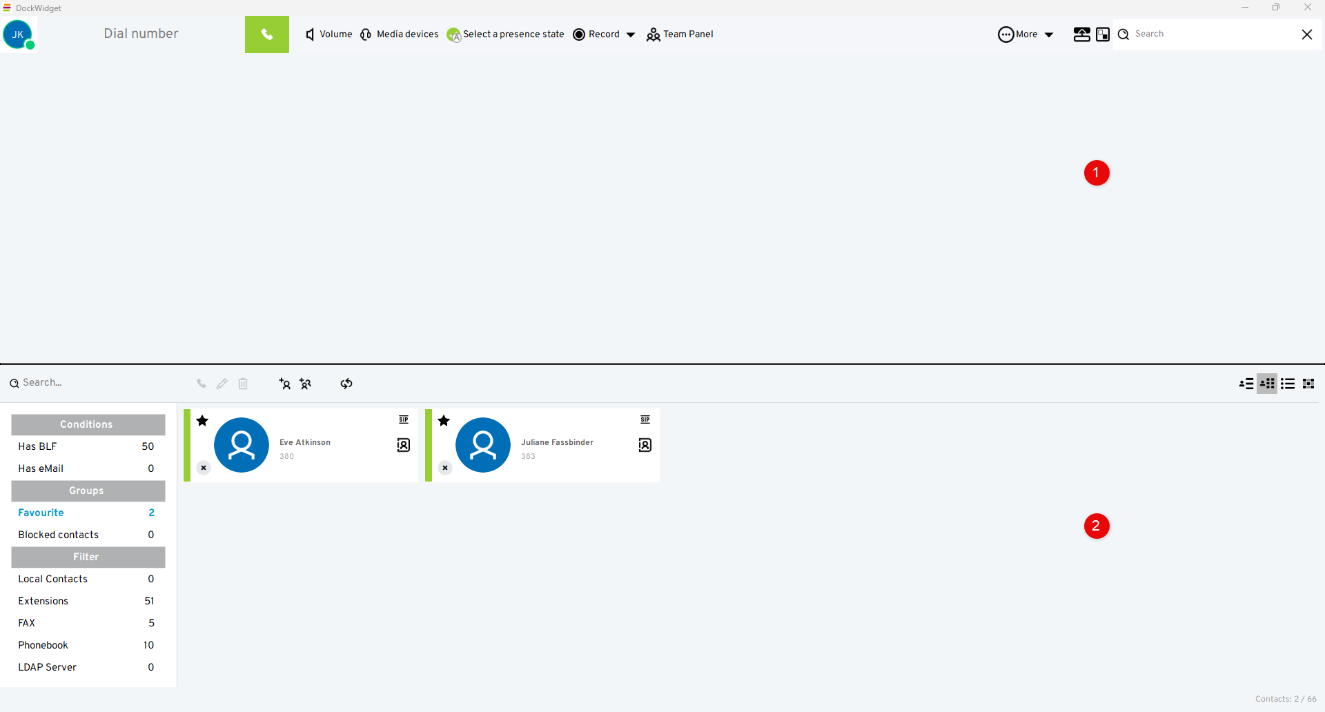 Please note that you need to click on the user icon to open a menu with additional user options (see below).Team Panel (contact group display)
