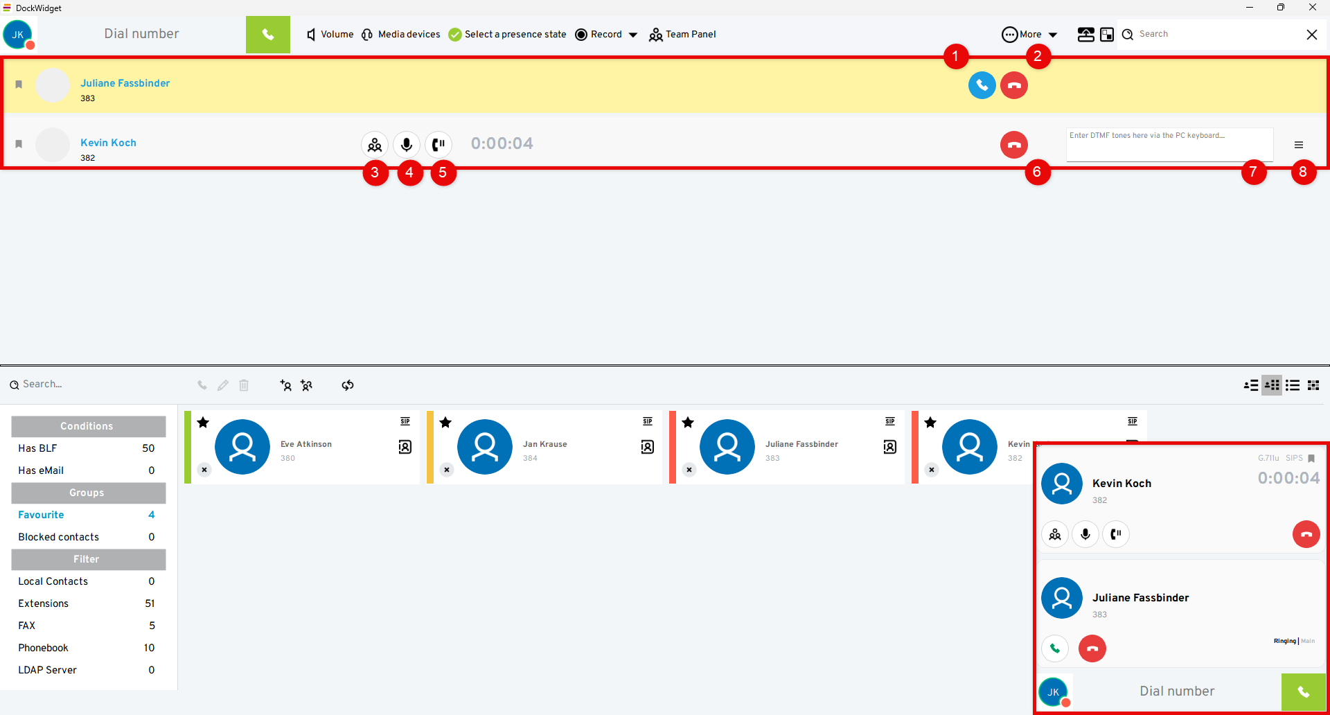 Your telephone status is shown with a BLF: